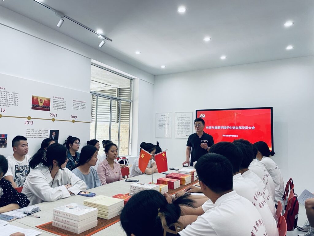 为了进一步加强和改进高校基层党组织建设,充分发挥高校基层党组织的政治核心作用,体育与旅游学院学生党支部党员大会于2023年4月20日在党群服务中心召开。 此次大会主要议程为:宣传学习贯彻党的二十大精神,43名预备党员转正,接收24名发展党员为预备党员。会议由林洋洋书记主持。
