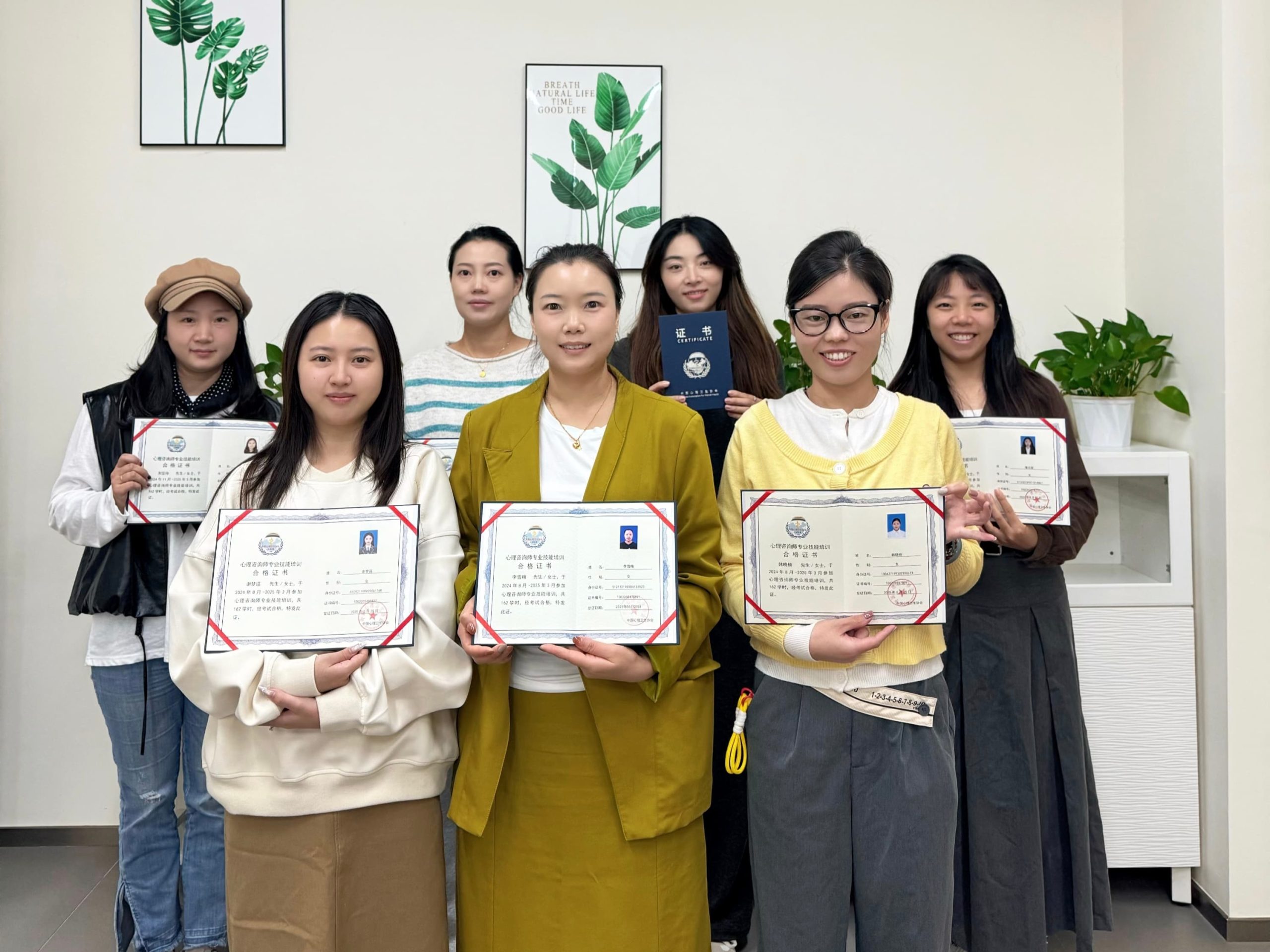 经过为期数月、总计162个学时的系统学习与严格考核,7名教师全员顺利通过,并获得中国心理卫生协会颁发的《心理咨询师专业技能合格证书》。