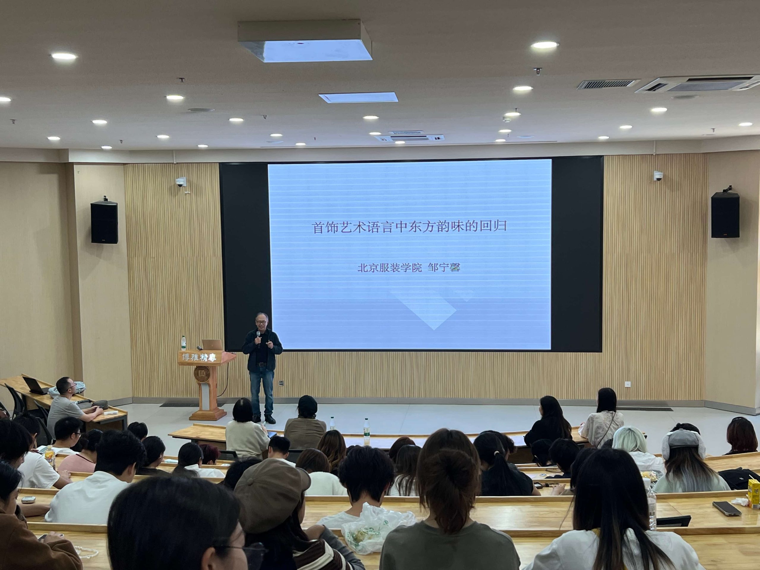 本次讲座分为上下两个半场,主题鲜明,内容充实。讲座上半场,世赛珠宝加工项目专家邹宁馨教授以“首饰艺术语言中东方韵味的回归”为题,引领师生进行了一场穿越古今的美学之旅。邹教授从缘起和传承、东西方造物态度和首饰形式和物化的东西方融合三个方面,深入浅出地讲解了如何将东方独特的意境、纹样、材质和工艺与现代首饰设计相融合。他强调,在全球化语境下,设计师更应扎根于本民族文化土壤,从东方美学中寻找身份认同与创作源泉,让作品在方寸之间展现深邃的文化底蕴与时代精神。