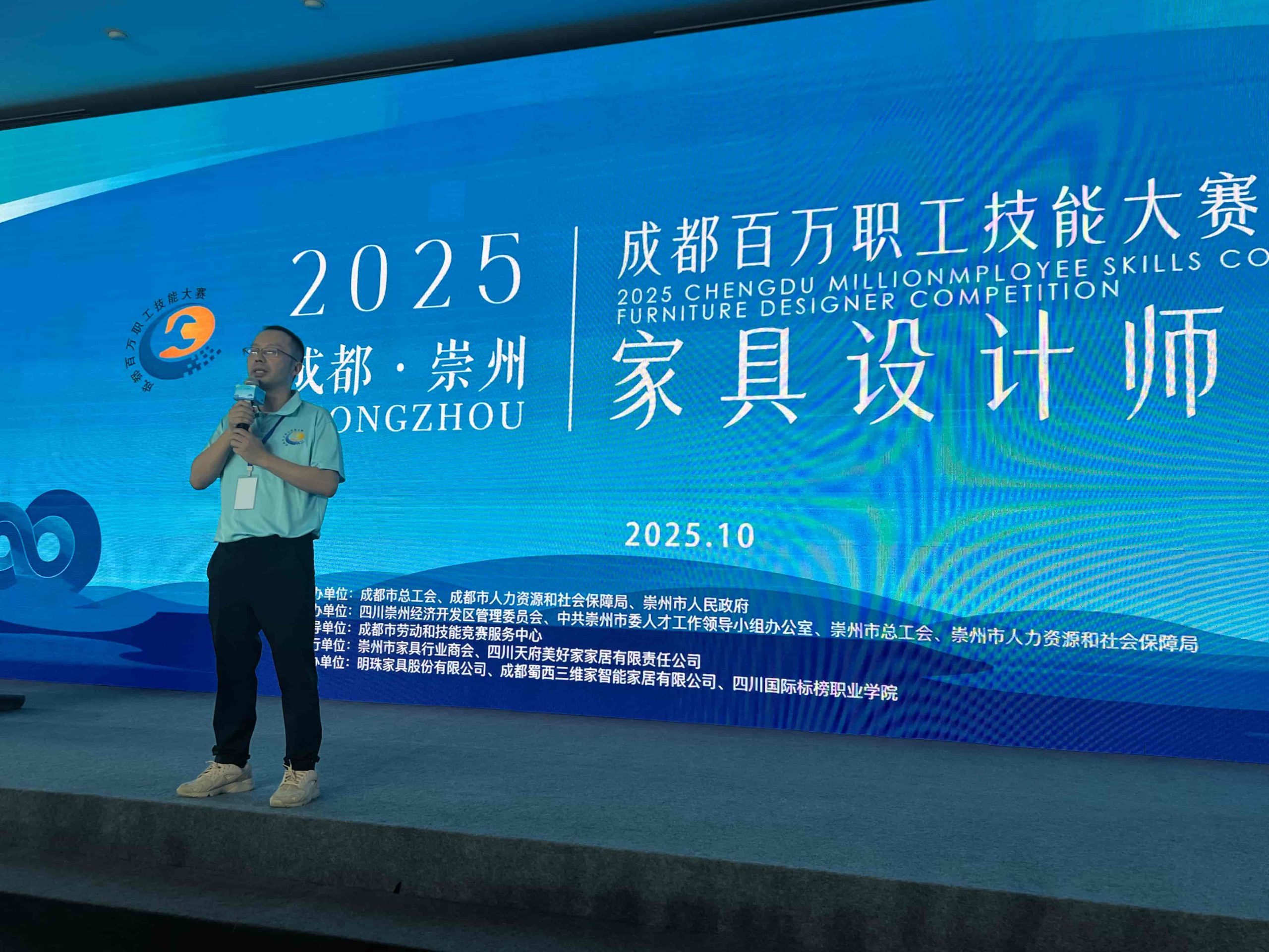 10月16日-17日,由成都市总工会、成都市人力资源和社会保障局、崇州市人民政府主办,四川崇州经济开发区管理委员会等承办的成都百万职工技能大赛家具设计师赛项成功举办。作为四川省家具项目集训中心及本次赛事的重要协办单位之一,我校充分发挥在家具设计领域的专业优势与资源整合能力,为大赛提供了坚实的技术支持与人才保障,以实际行动践行“技术服务社会”的办学理念。