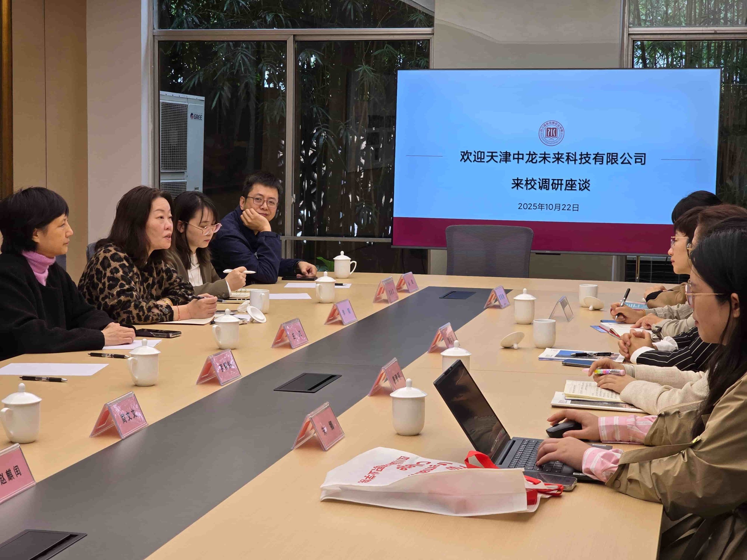 2025年10月22日,天津师范大学津沽学院社会举办方——天津中龙未来科技有限公司董事刘元园一行五人来校调研,深入探讨特色专业建设与产教融合的创新路径。我校教学副院长庄红及相关职能部门负责人陪同调研。