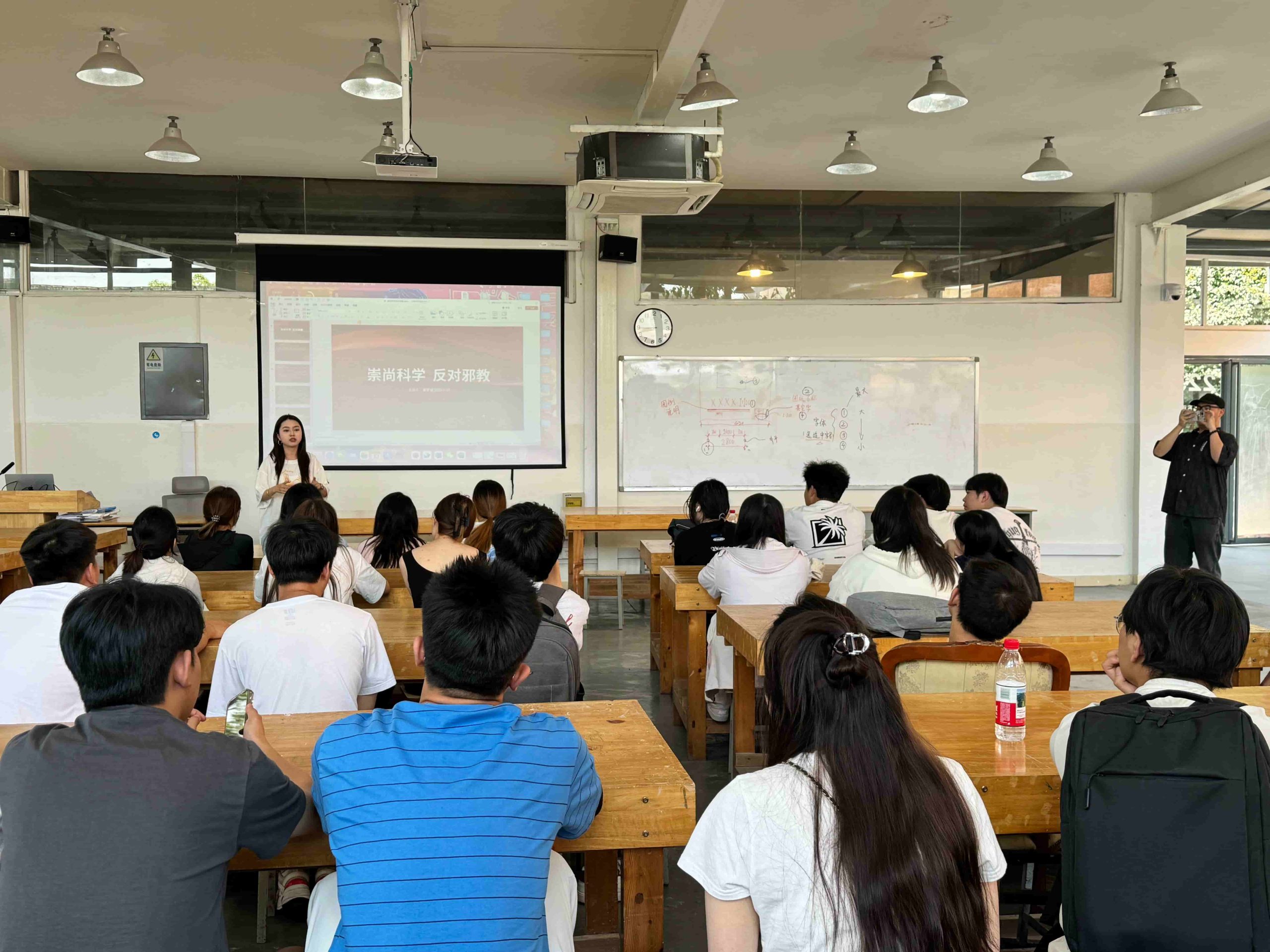 活动通过党团日活动、思政课堂专题教学等载体实现全域覆盖,各学院协同开展主题班会、座谈会等,构建”线上+线下”立体宣传矩阵,累计影响师生数万人次,推动”崇尚科学,反对邪教”成为全校共识。