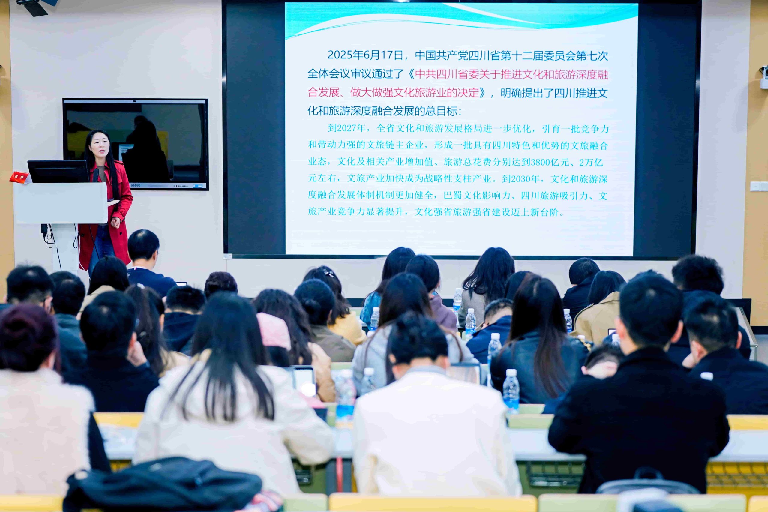 在理论学习环节,成都市委党校文化建设教研部副教授郑妍以《省委十二届七次全会、市委十四届七次全会精神解读》为题,系统阐释了全会精神的核心要义与实践要求,引导团干部将思想统一到服务成都高质量发展大局中。