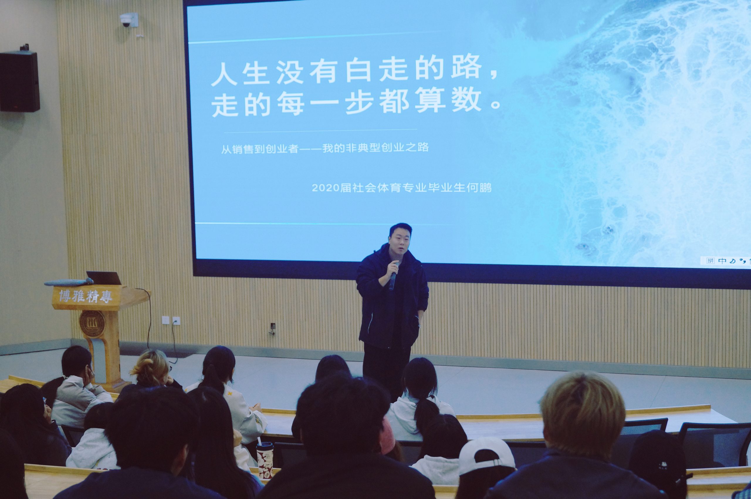 为充分发挥优秀学子的榜样引领作用,助力在校学生明确发展方向、增强职业素养,11月5日下午,由学生工作部主办的“职通未来咖啡厅”朋辈分享会首场活动在国际会议厅顺利举行。本次活动特邀体育与旅游学院优秀校友何鹏返校,以“成长路径与职业发展”为主题,与同学们展开了一场真诚而深入的交流。