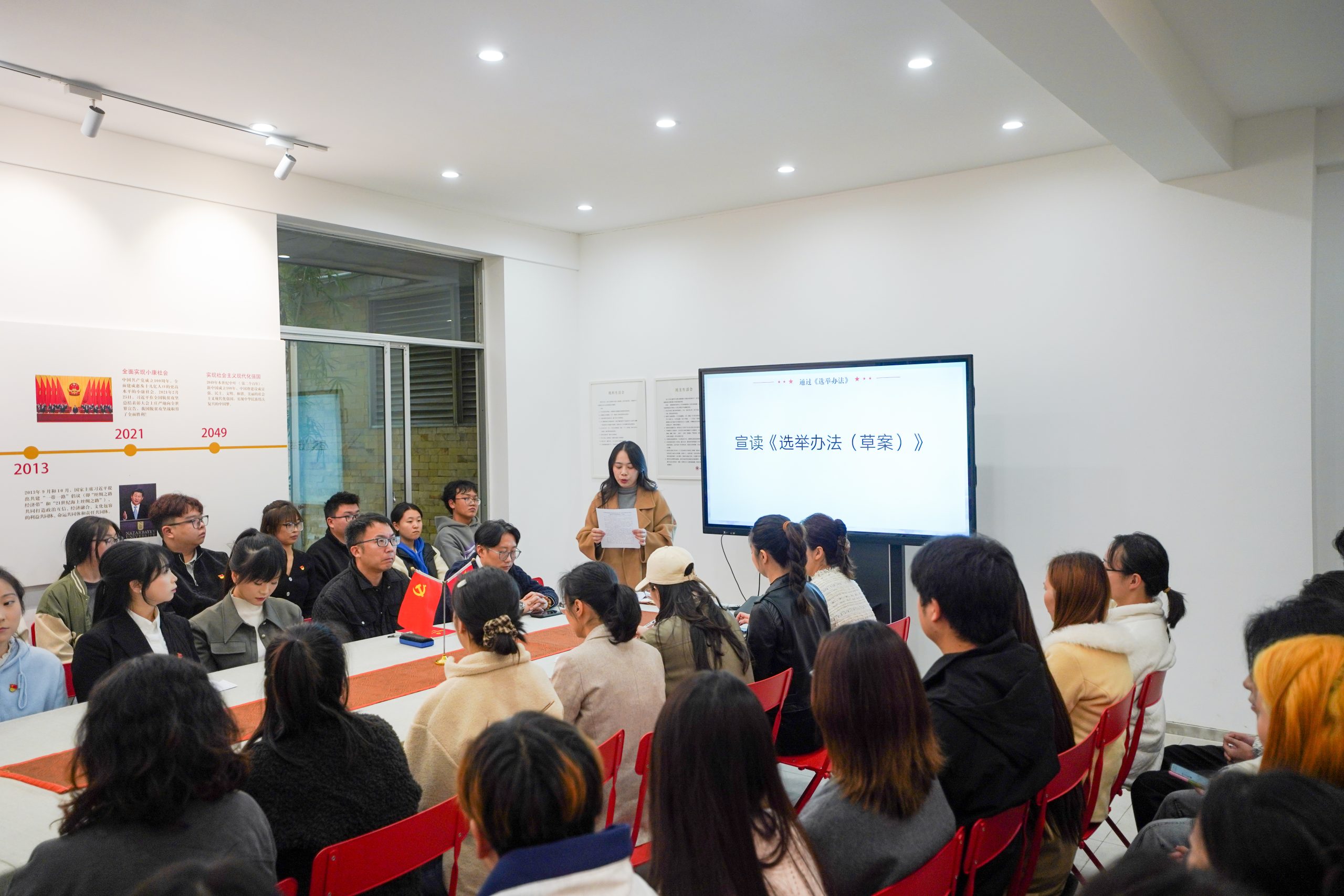 2025年11月6日,艺术与设计学院学生党支部召开党员大会,顺利完成支部委员会换届选举。本次大会应到正式党员 24 名、预备党员 30 名,实到正式党员 21 名、预备党员 26 名,其中有选举权的正式党员实到 21 名,符合选举规定,大会合法有效。