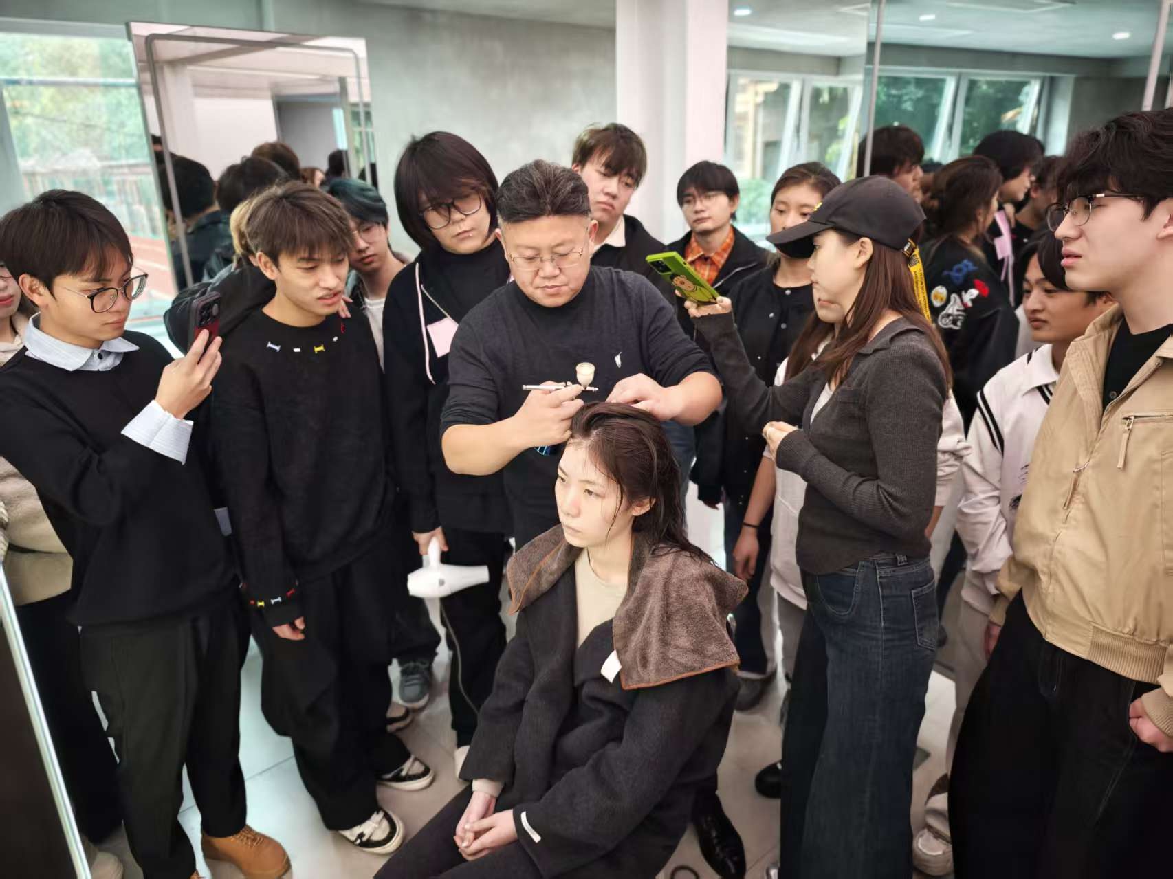 为进一步提升师生头皮护理专业素养,深化工学交替教学模式成效,推动造型服务标准化建设,我校合桃造型沙龙于2025年11月8日组织开展法国 Hairfax 专业头皮护理专项培训。人物形象设计专业发型教研室教师与大三大二工学交替学员共同参与,以理论与实操深度融合的形式,为师生搭建专业技能提升平台。