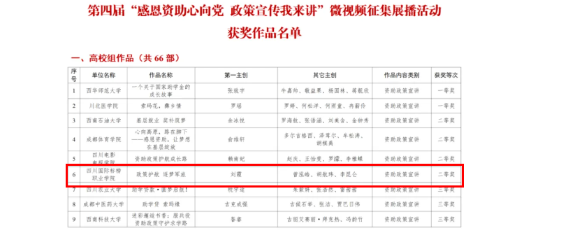 喜报丨我校在第四届“感恩资助心向党 政策宣传我来讲”微视频征集展播活动中获奖
