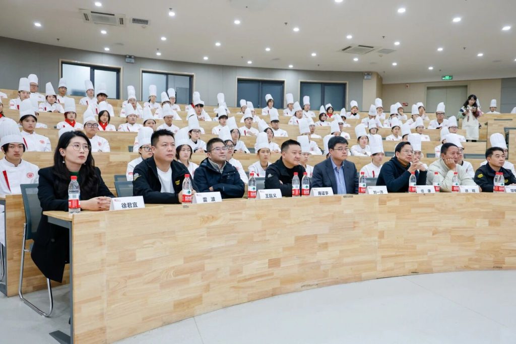 学院理事长、院长刘一沛,体育与旅游学院院长徐明、副院长王磊义,酒旅休闲系主任徐君宜,烹饪工艺与营养专业主任李俊杰等学院领导悉数到场。丁点儿食品董事长任康、人力资源部经理邬银权、商务经理陈证宇、销售总监雷波齐聚一堂。此外,烹饪专业师生代表共同参与,共同见证这一具有里程碑意义的重要时刻。