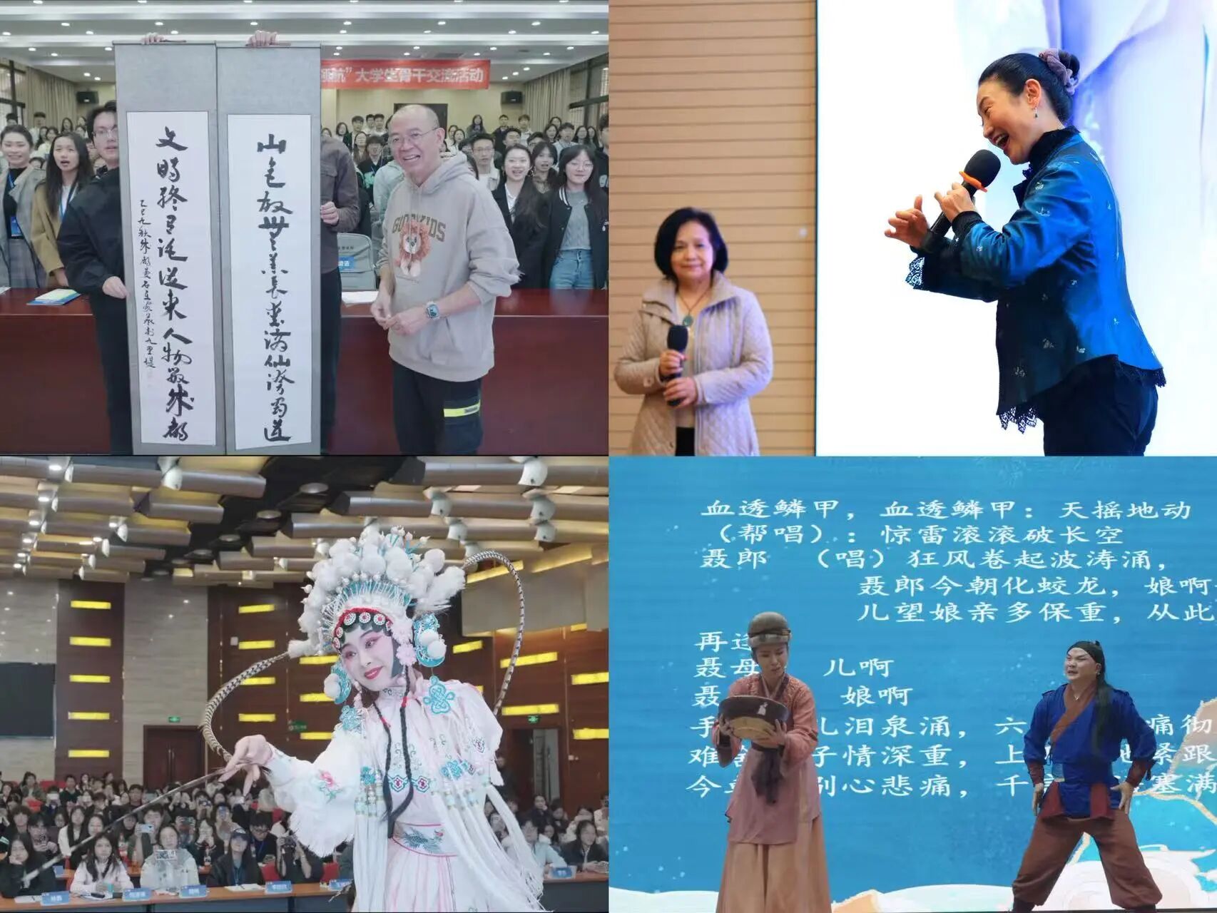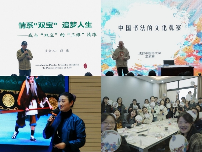 活动突破传统课堂模式,以多元形式深化文化浸润。中国双宝文化学者薛康以“情系‘双宝’ 追梦人生”为主题,分享其与大熊猫、金丝猴的深厚情缘,展现生态保护与文化传播的实践智慧;国家一级演员、成都市川剧研究院常务副院长陈巧茹携“非遗川剧进校园”活动,通过经典剧目展演与面对面交流,让学员近距离感受蜀地文化的独特魅力;省书协副主席王家葵以“中国书法的文化观察”为题,解析书法艺术中的历史哲思与时代精神。此外,西南交通大学“音乐里的故事”讲演团以《我和我的祖国》为题,用音乐讲述家国情怀;“设计・未来”创新创意美育基地则通过手工制作体验,引导学员感悟传统工艺中的匠心传承。