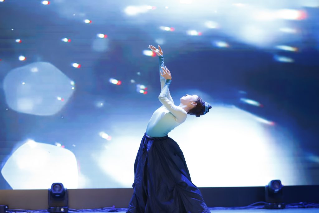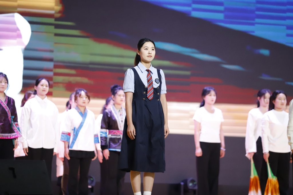 整场汇演,如同一幅流动的育人画卷。打击乐《玉盘》的清脆敲击,藏族群舞《天浴》的纯净圣洁,民间舞《花瑶女》的质朴风情,共同编织出学生们广阔的艺术视野。而情景朗诵《师生情》中,当恩师们的叮咛与期许映满屏幕,台下闪烁的泪光与坚定的微笑交织,成为这堂“毕业必修课”最温暖的印记。那一刻,两年的陪伴与教诲、成长与感恩,都凝成了无需言说的默契,笑与泪并存,成为这堂“毕业大课”最温暖的注脚。
