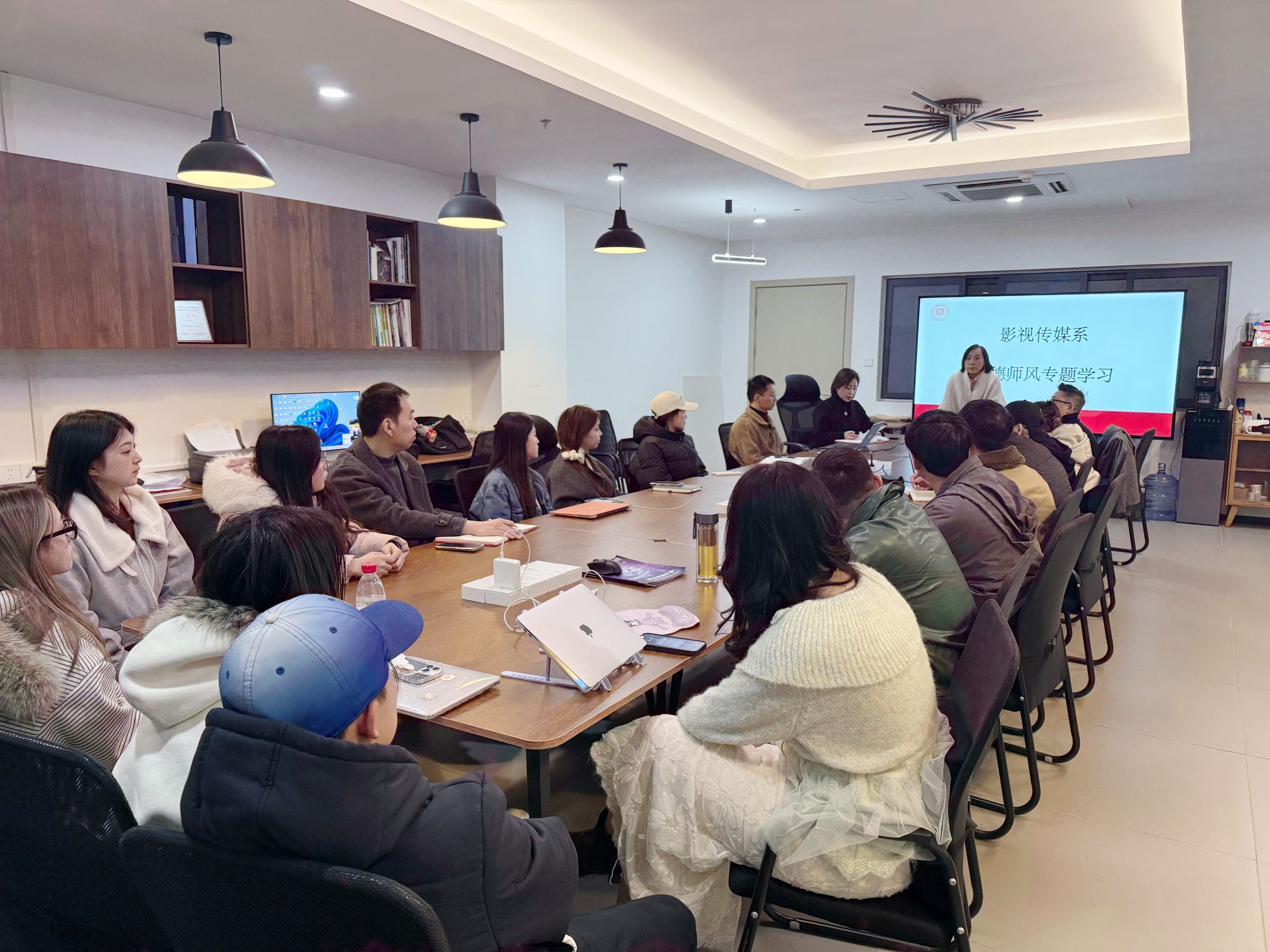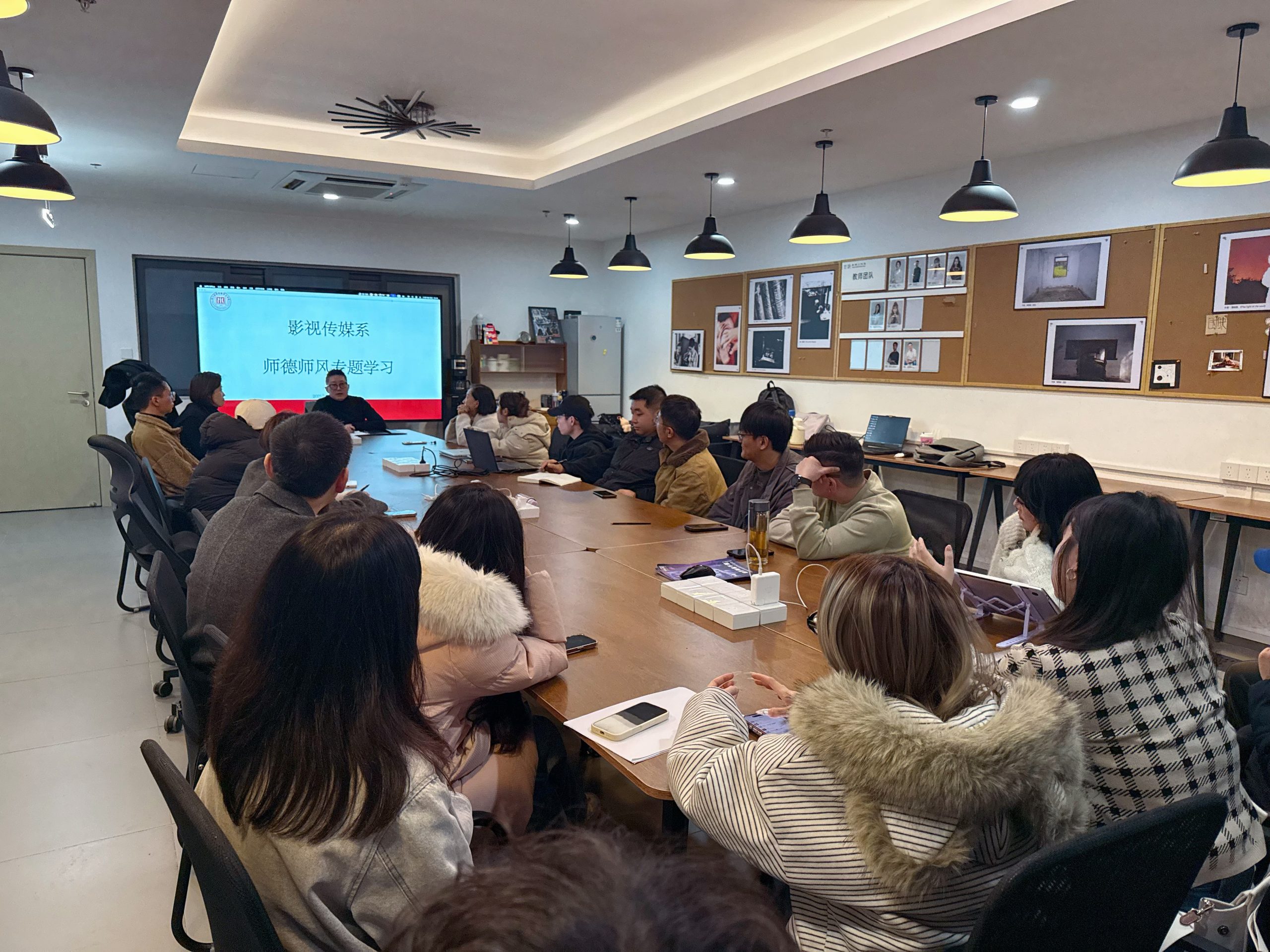 2025年11月19日,艺术与设计学院影视传媒系组织全体教师开展了一场意义深刻的师德师风专项学习活动。此次活动由艺术与设计学院院长洪波、党总支书记陶磊共同主持,通过“制度+案例+总结”的三维模式,为全体教师上了一堂生动的师德教育课。