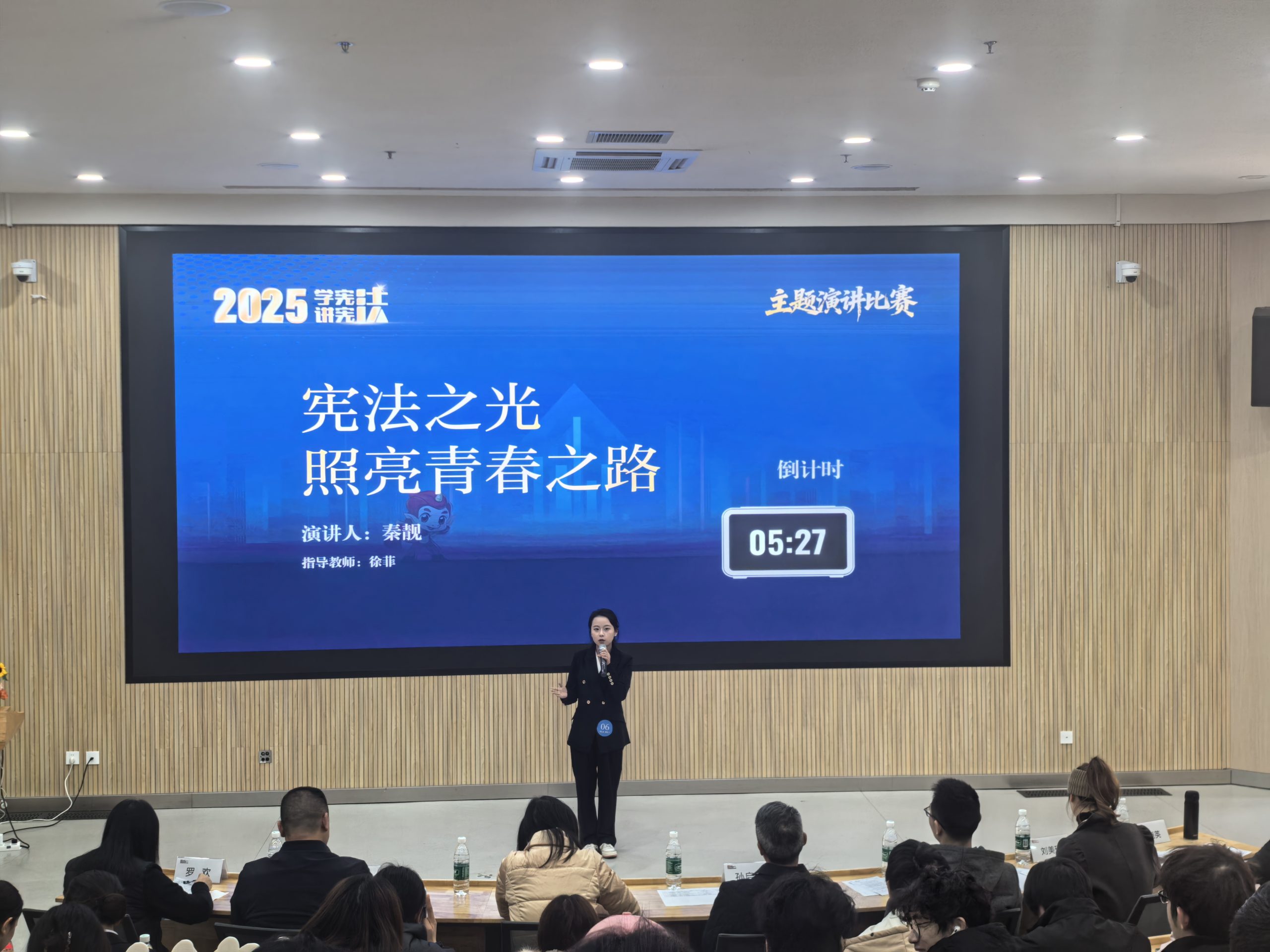 比赛中,选手们依次登台,围绕宪法与个人、与社会、与国家的关系,展开了富有感染力的讲述。《以宪法之名,铸青春华章》《不遥远的宪法:藏在生活里的守护》《权利“网”事》等演讲主题鲜明、角度新颖,结合专业所学与生活感悟,生动诠释了宪法在成长路上的重要意义,赢得现场阵阵掌声。