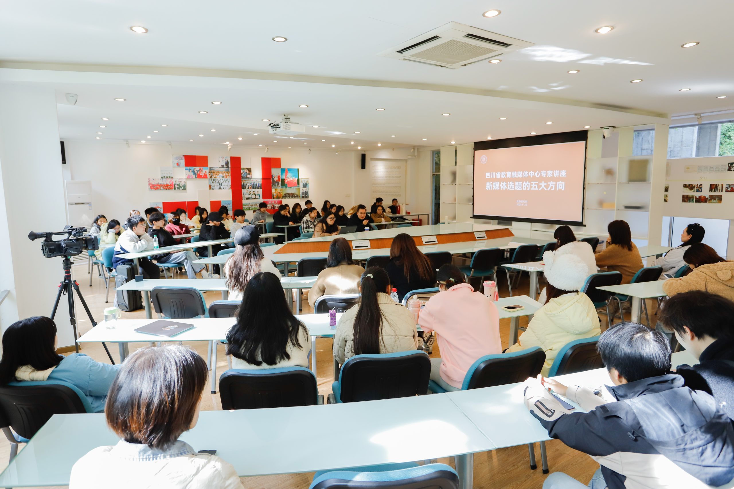 2025年11月19日下午,四川国际标榜职业学院党委宣传部在CB101会议室举办了一场主题为《新媒体选题的五大核心方向》的专题讲座,邀请到了四川省教育融媒体中心数字网媒事业部副部长、“四川教育发布”多平台运营核心负责人、四川省网信人才培养基地培训专家、四川农业大学新媒体学院特聘指导专家黄国兵。全校新媒体宣传骨干及学生代表共60余人参与了此次讲座。