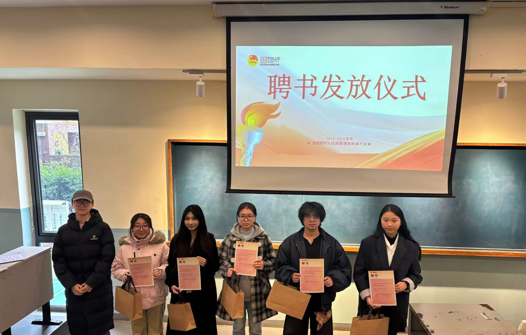 段显亚副书记宣读《关于聘任2025-2026学年学生社团社长的决定》,强调新任社长需以“服务成员、创新活动、打造品牌”为己任,成为社团“领航人”。宣传部部长戴张为52名第二十届新任社长逐一颁发聘书。