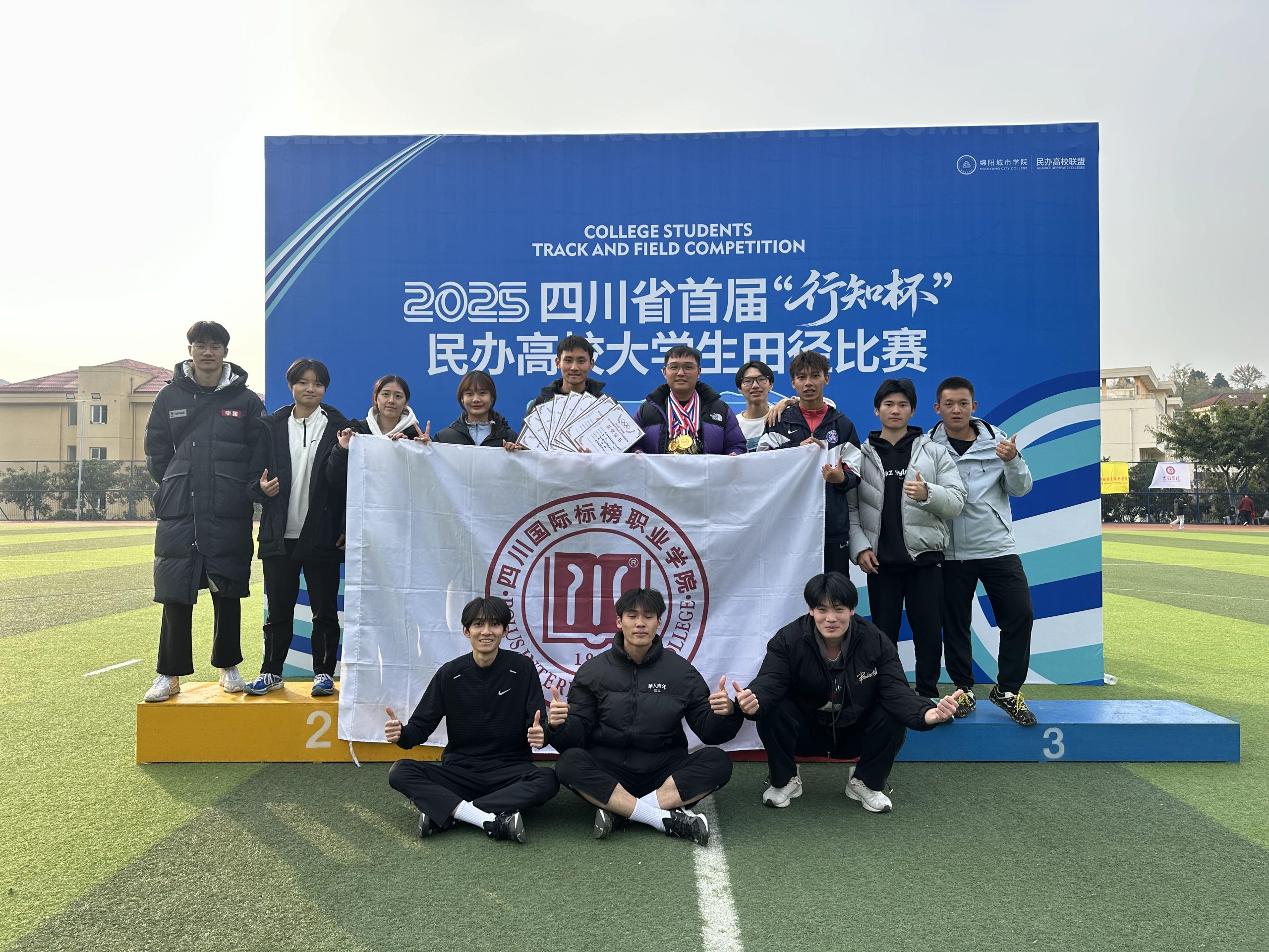 2025年11月21-22日,四川省首届“行知杯”民办高校大学生田径比赛在绵阳城市学院开赛。此次比赛由四川省教育厅指导,四川省民办高校体育联盟主办,绵阳城市学院承办,来自四川省各地22所高校参加比赛,我校田径代表队在领队崔燕老师,教练员张杰、周凯老师的指导下参加了本次比赛。