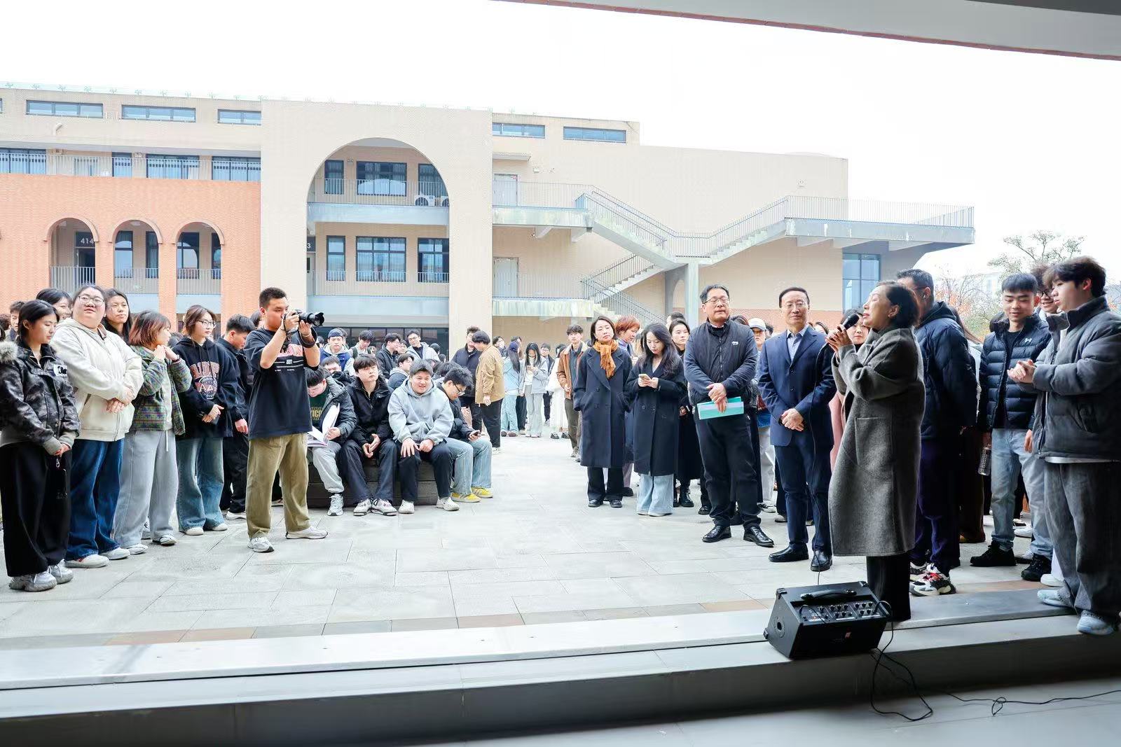 活动开场,洪波院长发表讲话。她高度肯定了毕业生们在创作中的努力,赞扬他们将创意与才华凝聚成精彩作品,为展览增添了绚丽色彩。