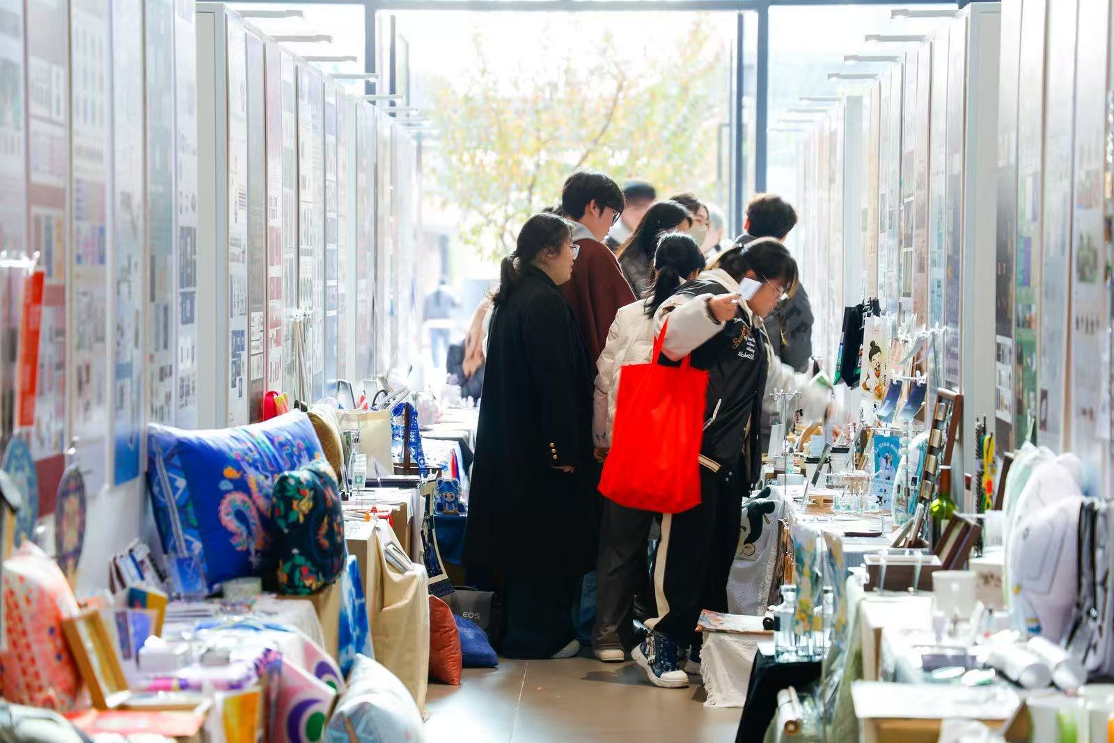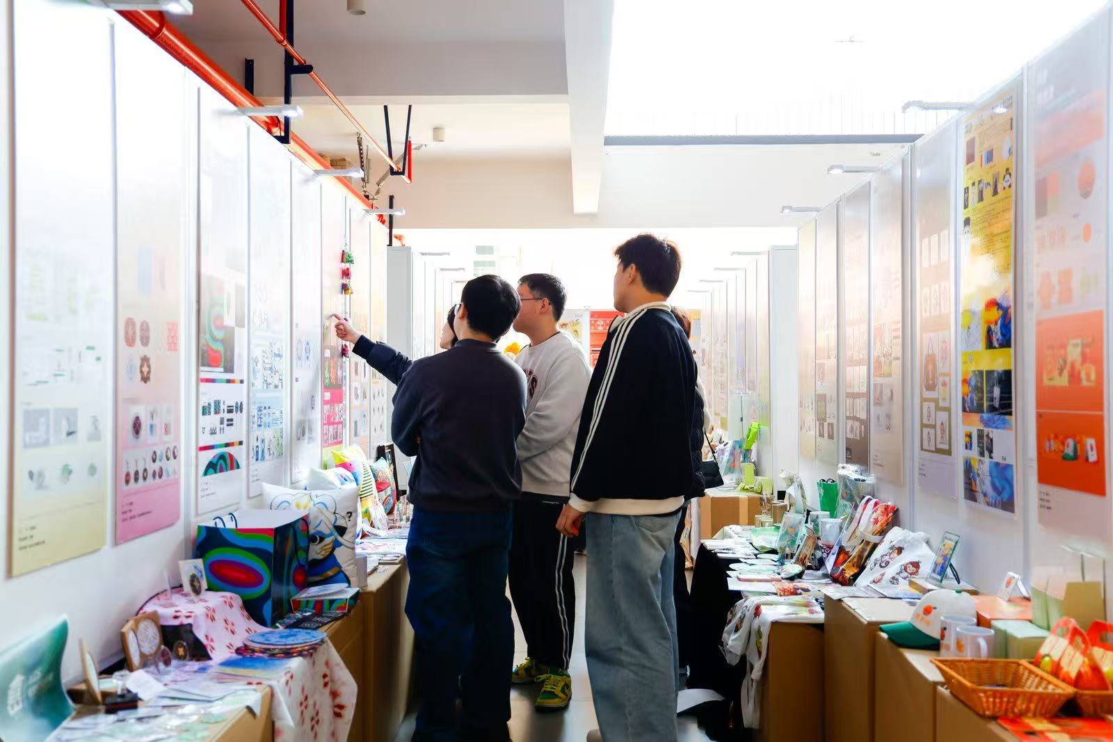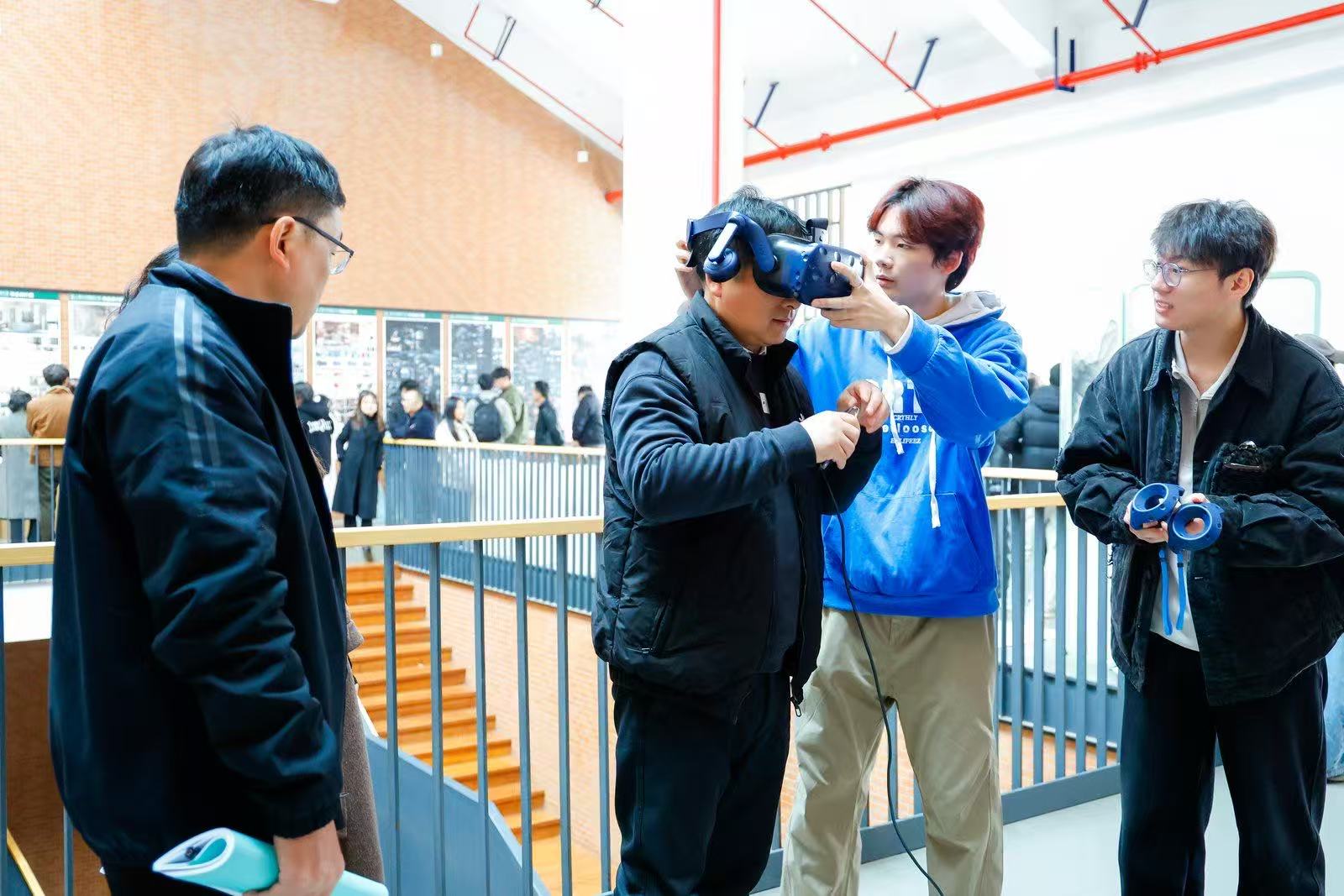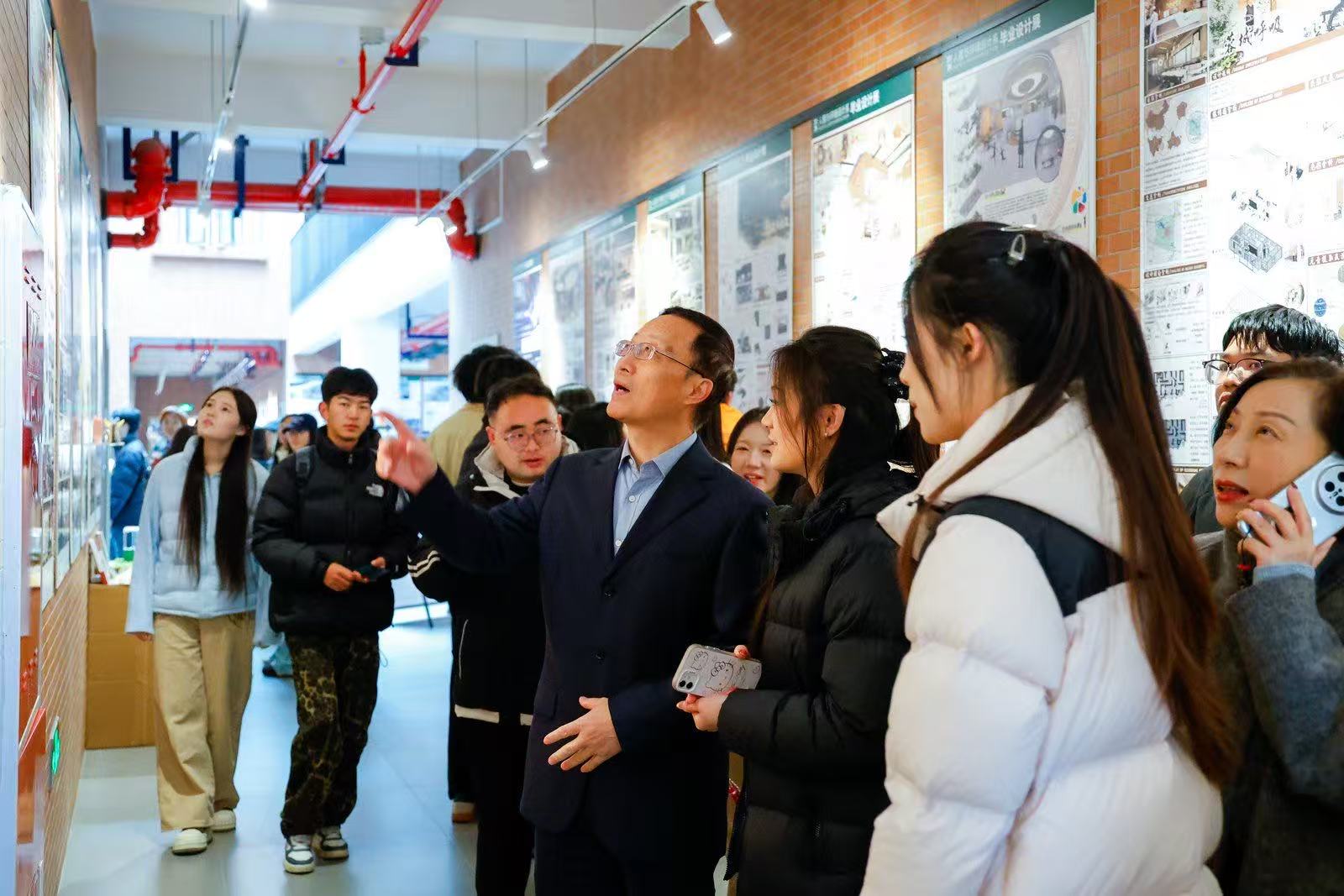 在热烈氛围中,洪波院长宣布展览正式开展。之后,系部主任陪同校领导前往学生作品展位讲解,学生们也精神饱满地准备向参观者分享创作故事与灵感。