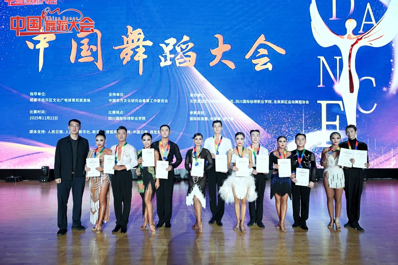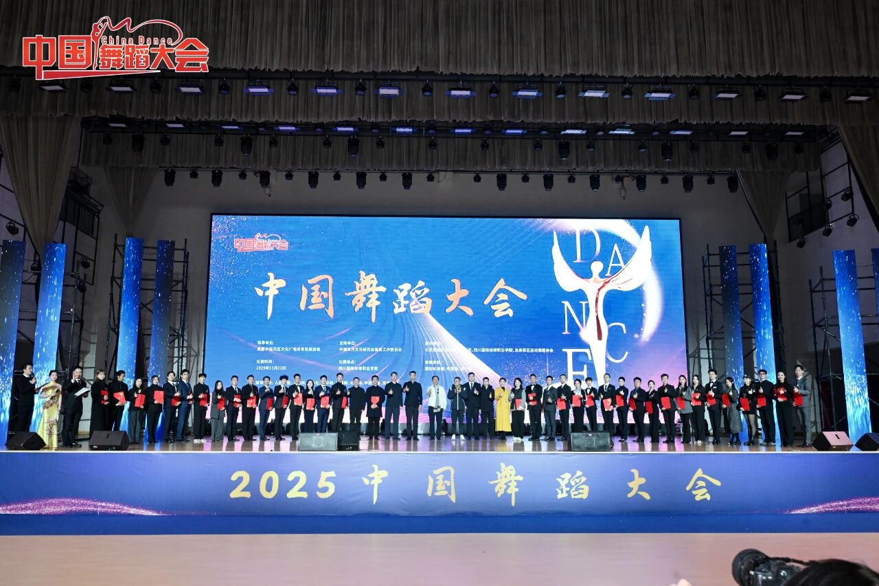 近日,由成都市龙泉驿区文化体育和旅游局指导,北京源远文化传媒有限公司和我校共同承办的2025中国舞蹈大会在学校体育馆盛大举行。来自全省80余支代表队、2000余人次参与此次盛会。我校体育与旅游学院院长徐明、副院长王磊义受邀出席大会开幕式并为评审员授牌。饶浩老师受邀担任本次大会评审长,陈乐老师、刘长升老师、李欣玉迪老师受邀担任评审员。