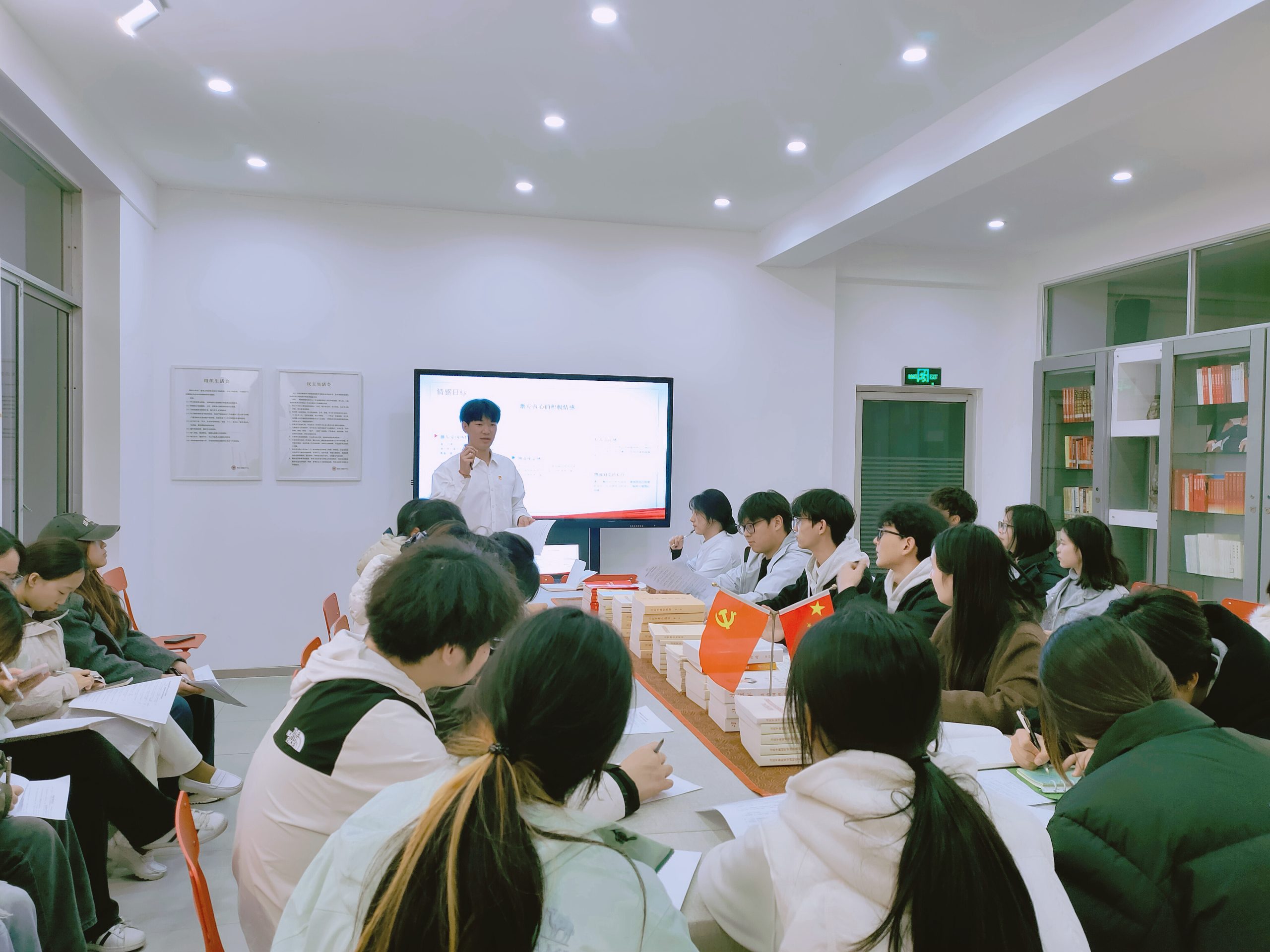 活动伊始,校学生会团支部书记谢俊祥以“青春与时代同频,责任与使命同行”为切入点,结合自身学生工作经验,系统阐释了本次培训的核心意义。他强调,党的二十届四中全会为青年成长指明方向,学生干部作为青年骨干力量,需先学一步、学深一层,既要精准把握会议精神的核心要义,也要将理论与校园实际、学生需求紧密结合,做到“学思用贯通、知信行统一”。随后,校学生会团支部副书记张敬阳围绕“共青团的使命传承与新时代学生干部担当”展开分享,通过梳理共青团百年使命变迁,结合校学生会“1+5+N”核心架构的实践探索,生动解读了组织作用,号召学生干部当好“宣传员”“服务员”和“排头兵”,在履职尽责中彰显青春担当。