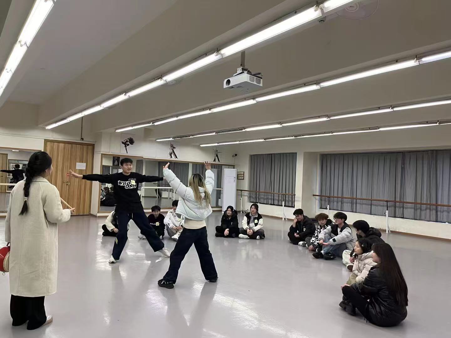活动开场,“大风吹”等破冰游戏迅速点燃了现场气氛。学生们在游戏中迅速打破彼此间的陌生壁垒,积极融入集体,为后续活动的顺利推进筑牢了坚实根基。紧接着,“名字身体动作”“空间走动”等活动接踵而至。在这些活动中,学生们凭借团队协作与创意展示,空间感知力得到显著提升,团队协作能力也进一步增强。特别是在“照镜子”环节,学生们仅通过肢体语言与同伴进行无声交流,深刻体会到理解与换位思考在团队协作中的关键作用。