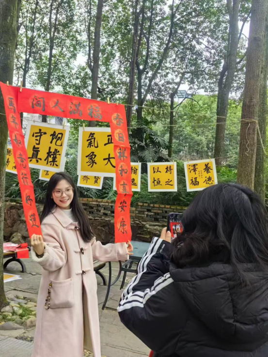 笔墨挥毫展风采。书法社成员现场献艺,以端庄大气的楷书、潇洒灵动的行书书写福字与春联,每一笔都饱含对新年的期许,让师生们在墨香氤氲中领略中华书法的独特魅力,解锁最地道的传统年味。