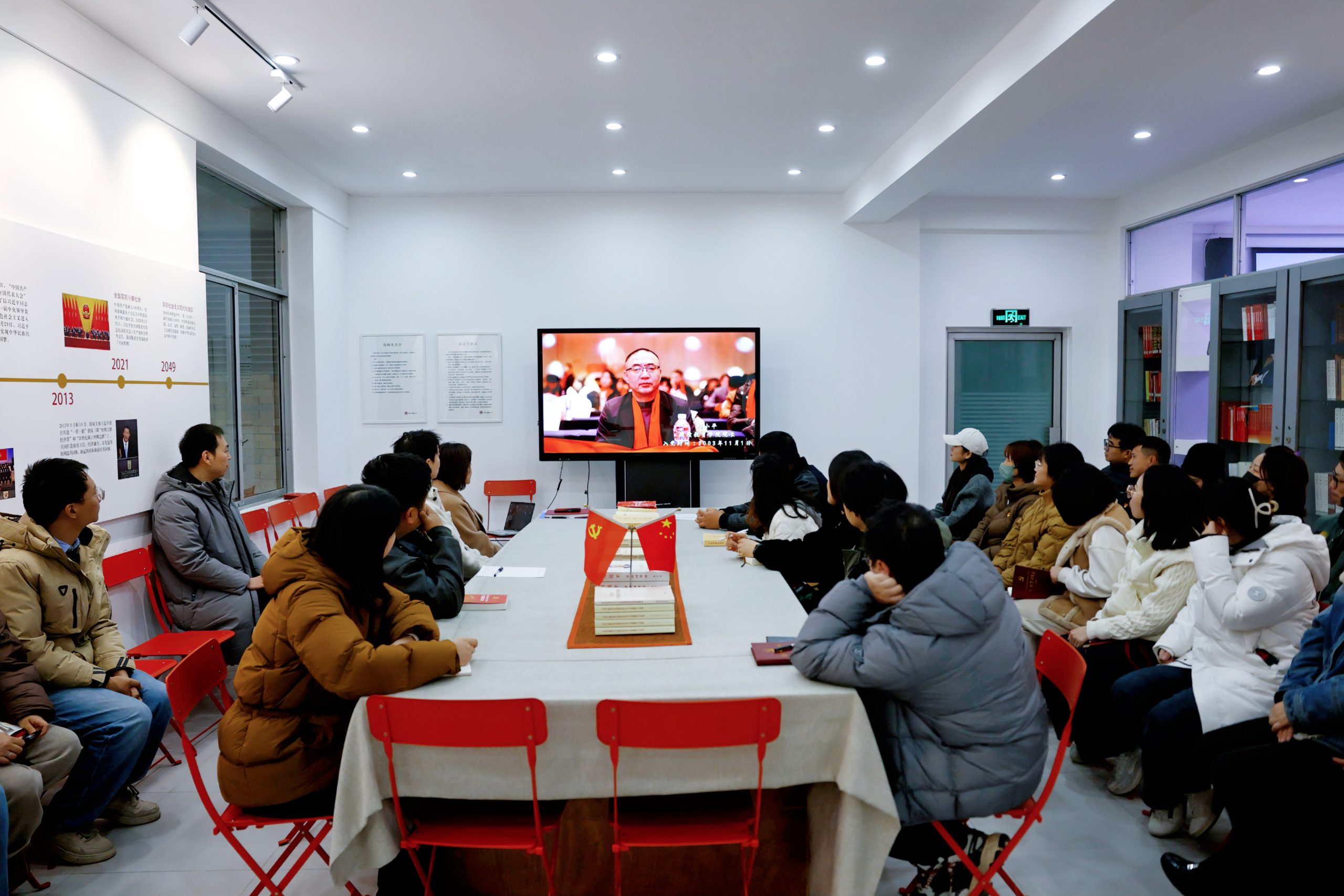 活动在庄重的氛围中开始,全体党员首先一同观看了党支部为7位在四季度迎来“政治生日”的同志秘密筹备的纪念视频。视频生动展现了他们在教育教学、科研创作中的点滴奉献与成长历程。这份独特的“生日礼物”引发了在场党员的广泛共鸣,回顾奋斗足迹,更感使命在肩。
