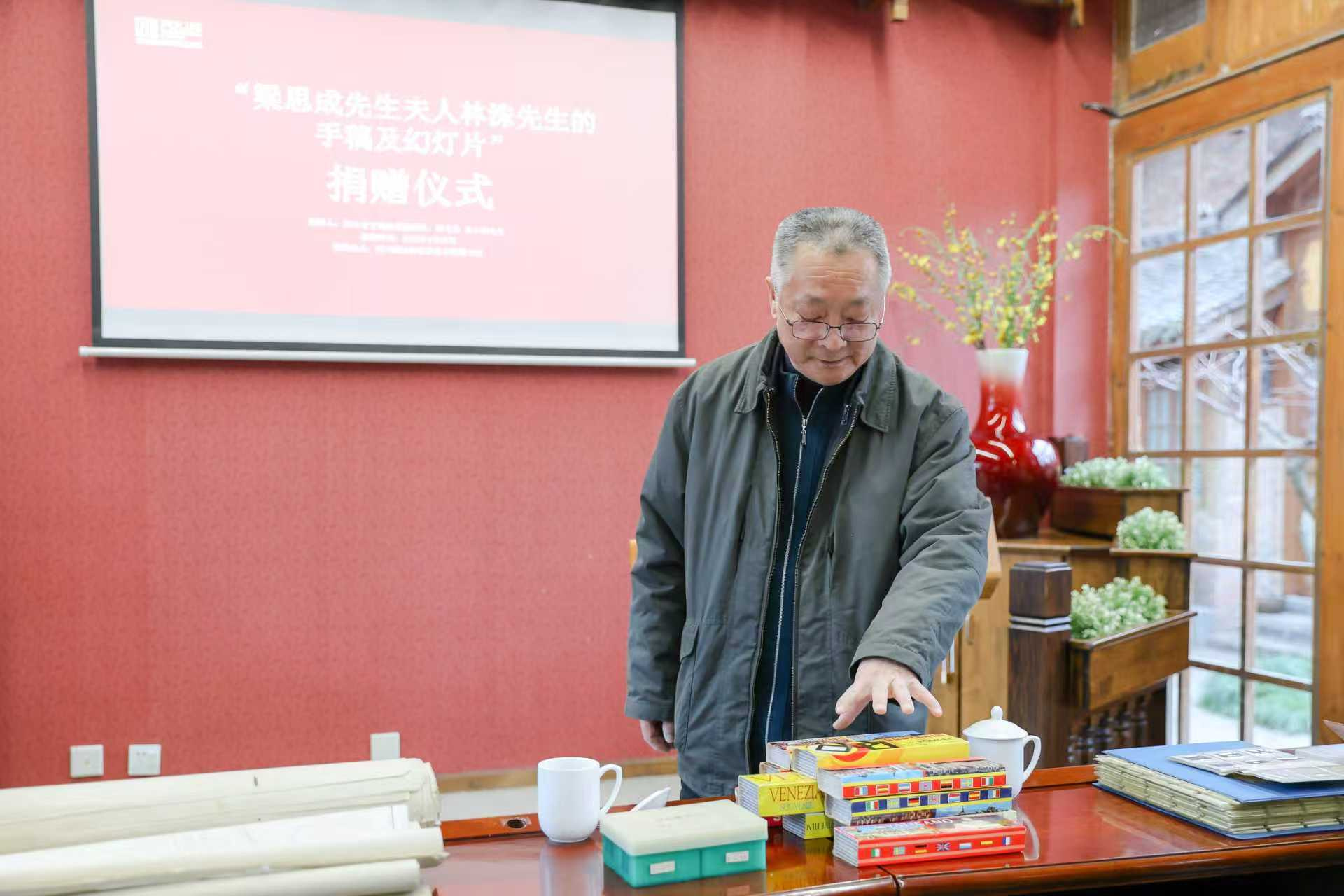 2026年1月23日上午,四川省文物局原副局长、研究员朱小南先生将其多年珍藏的一批梁思成、林洙夫妇珍贵手稿及相关历史幻灯片无偿捐赠予我校,捐赠仪式于我校图书馆经义讲堂顺利举行,学校阎红理事、任再生副院长、人文与教育学院院长马经义、档案馆馆长张丽、产业中心主任周文文、人居与环境设计系主任周宇、川作家具研究所副教授王加祎等校内有关单位负责同志出席。仪式由图书馆馆长庞慧萍主持。