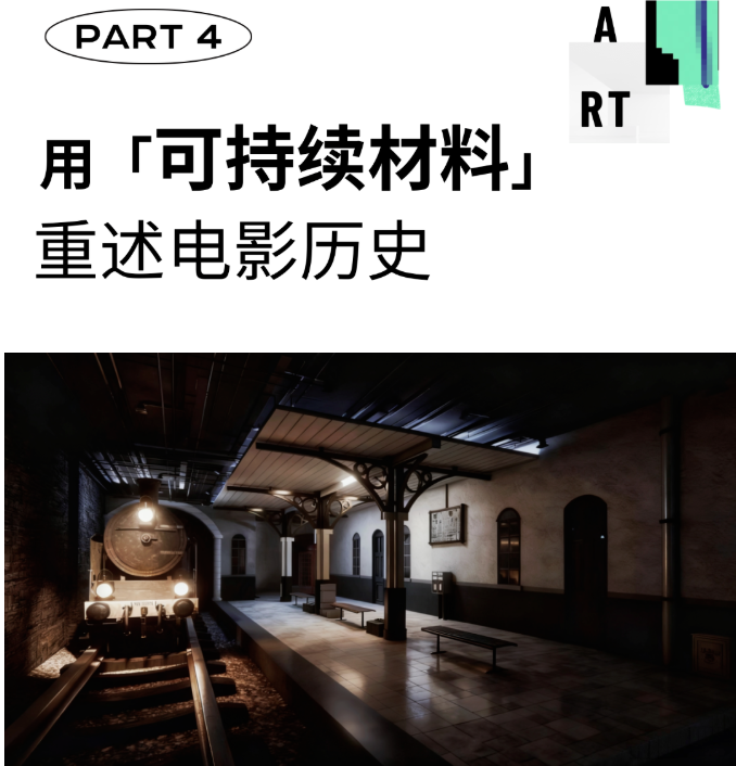 这个毕设作品还有一个隐藏的叙事线索,那就是材料。“我们大量使用了工业废料、农业废弃物(如玉米芯)再造的板材。”这让展馆本身成为主题的延伸,通过“用电影废料讲述电影历史” 这一巧思,实践了可持续设计理念,赋予了空间更深层的思考维度。