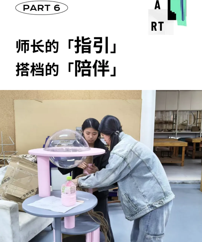 与搭档的合作则充满了日常的温暖与坚实的支持,两人因相近的审美与互补的性格而结伴,在无数个并肩的日夜中,共享着创作的艰辛与欣喜。一次为完成毕业手册熬夜至凌晨四点,一桶分食的泡面,成为这段旅程里最具象的温暖注脚。