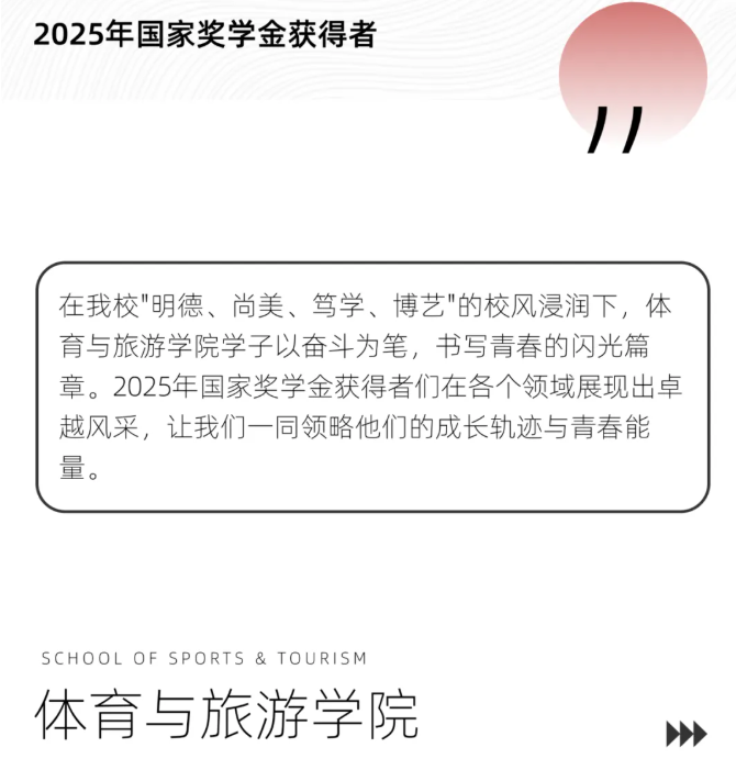 榜样力量丨青春领航 ——体育与旅游学院2025年国家奖学金获得者风采展示