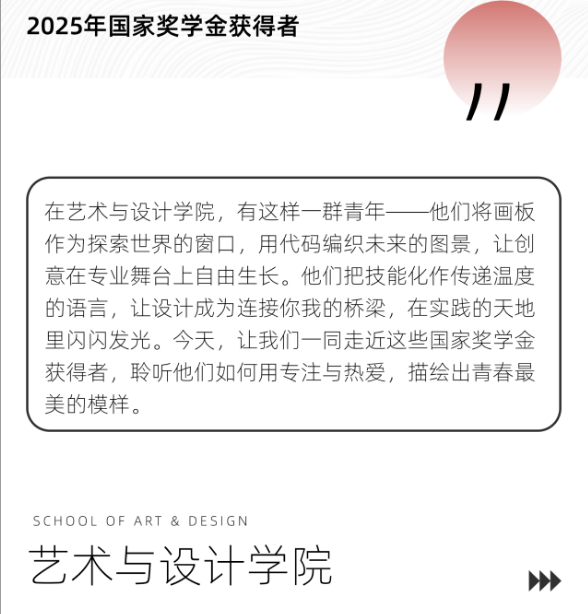 榜样力量丨以技为翼,定义青春——艺术与设计学院2025年国家奖学金获得者风采展示