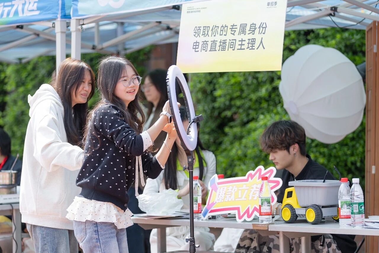 在熟悉考场之余,学校朕皇足球场上还上演了一场别开生面的“青春加油会”。来自各二级学院的学长学姐们将校园文化与专业魅力带到现场,设置人像摄影体验棚、3D打印体验、校园文创产品制作、木作小木马体验、橄榄球体验区、体育健身小工具体验、人工智能变装间等特色展区,让考生在互动中感受不同专业的独特魅力。社团联合会带来的活力快闪、街舞社的劲爆舞步、吉他社的青春旋律更是点燃全场,为紧张备考的考生们带来片刻放松。