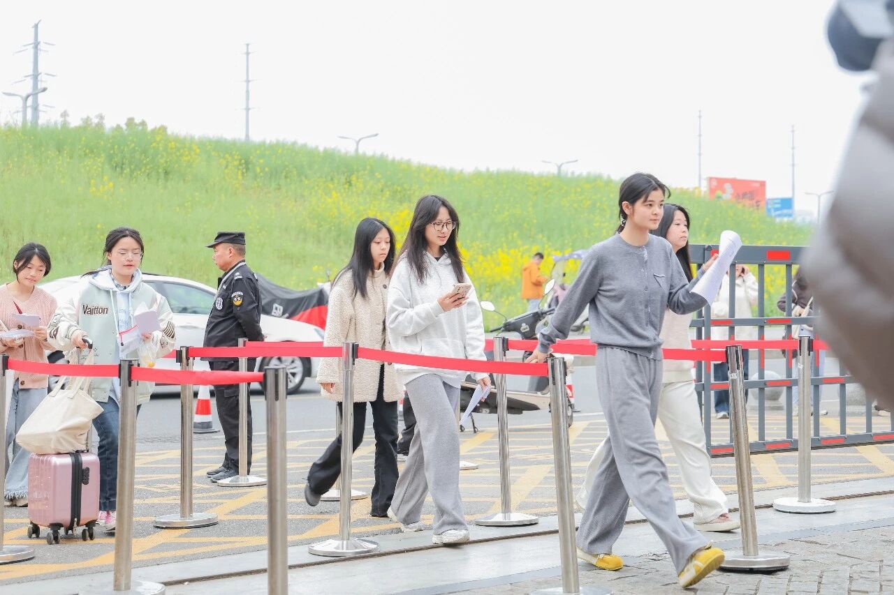 3月21日清晨7时许,已有不少考生和家长抵达考点。晨光熹微中,考生们手持准考证和有效居民身份证,在工作人员的指引下有序排队。所有考生进入考点封闭区前均须通过安检门检查,现场考生主动将手机、智能手表等电子设备存入指定寄存点,轻装上阵,从容入场。