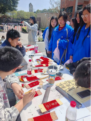本次开放日在朕皇足球场、11/12教学楼平台等区域设置了社团互动体验区,七大特色社团精心策划书法、陶艺、茶艺、拓印、健康科普、插花等多元体验活动,吸引了大量考生及家长驻足参与,让大家在互动中沉浸式感受我校社团文化的多元活力与传统文化魅力。