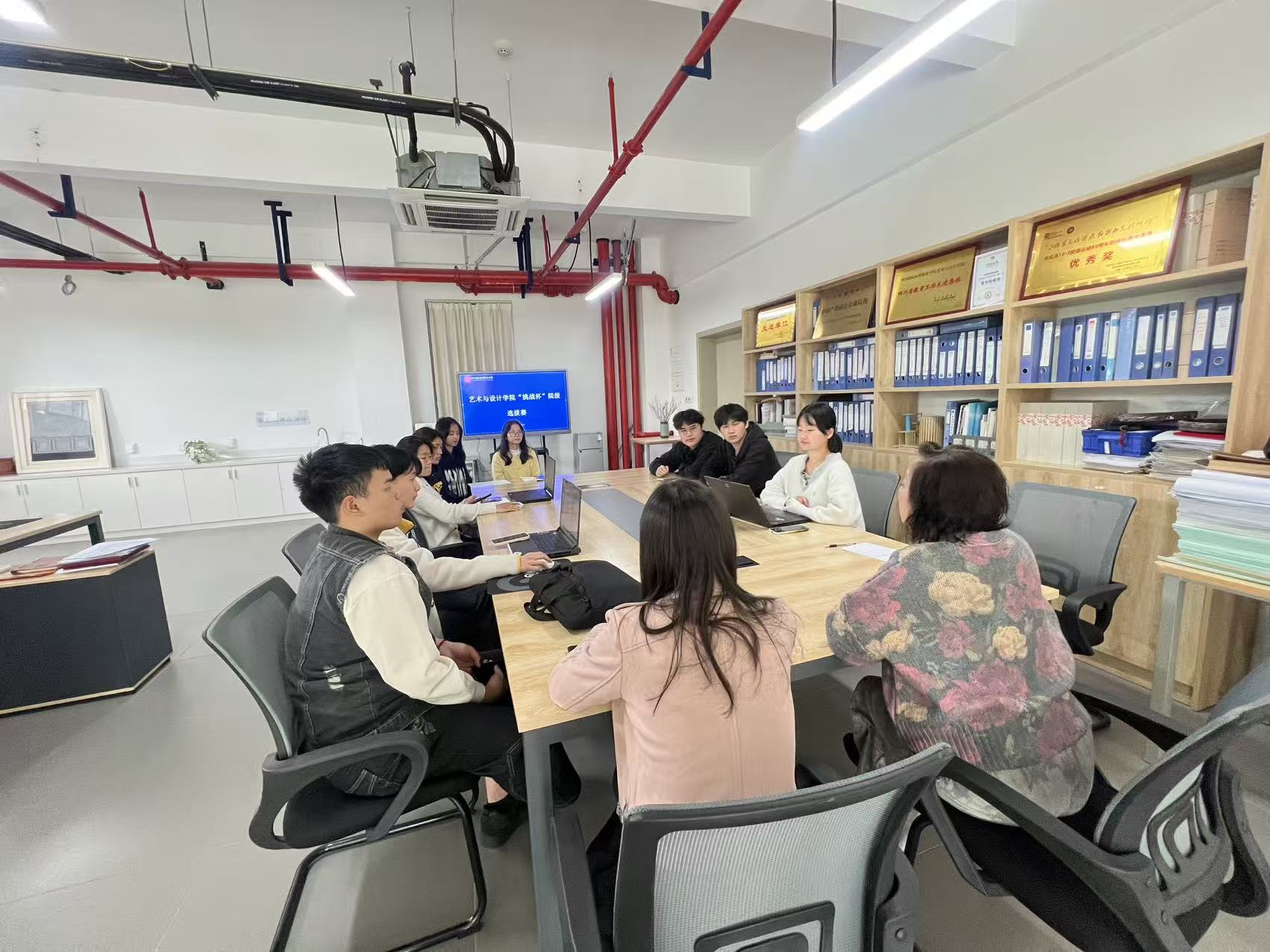 2026年3月23日中午12时30分,艺术与设计学院在院长办公室举行“挑战杯”院级选拔赛初赛。学院院长洪波、实践教学管理中心主任郭颖艳、分团委书记李文勇担任本次比赛评审。