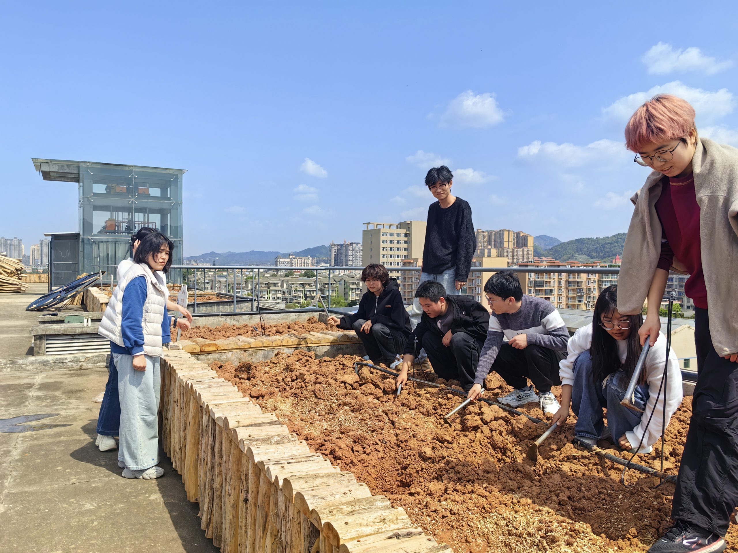 3月24日,四川国际标榜职业学院龙子楼屋顶春意盎然,“花栖同安·龙楼魔法非遗”项目启动仪式暨首次草药种植活动顺利举办。项目组成员与绿色生态导览协会志愿者共同翻土播种益母草等药用植物,正式拉开本年度屋顶非遗生态研学项目的序幕。