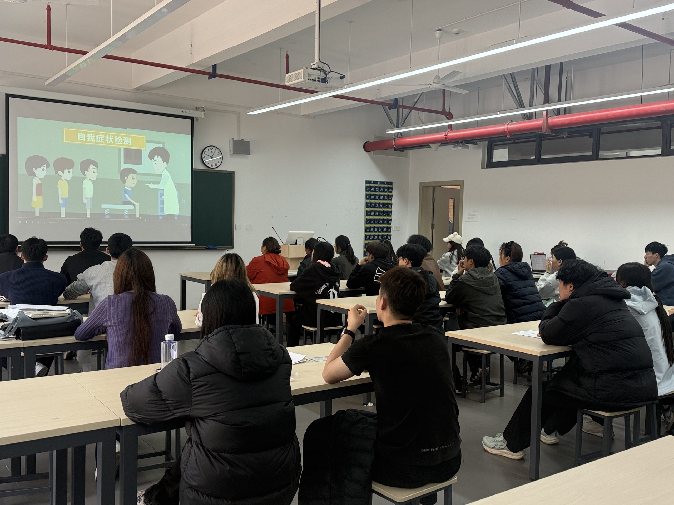 为进一步普及结核病防治知识,提升学生自我防护意识,充分发挥优秀学生的榜样引领作用,体育与旅游学院学工办于2026年3月24日——第29个世界防治结核病日,在11教208教室成功举办“科学防结核,健康伴我行”视频科普讲解活动。本次活动面向校优秀学生干部、校三好学生共40人,通过科普视频播放与现场讲解相结合的形式,营造了重视结核病防控的良好校园氛围。