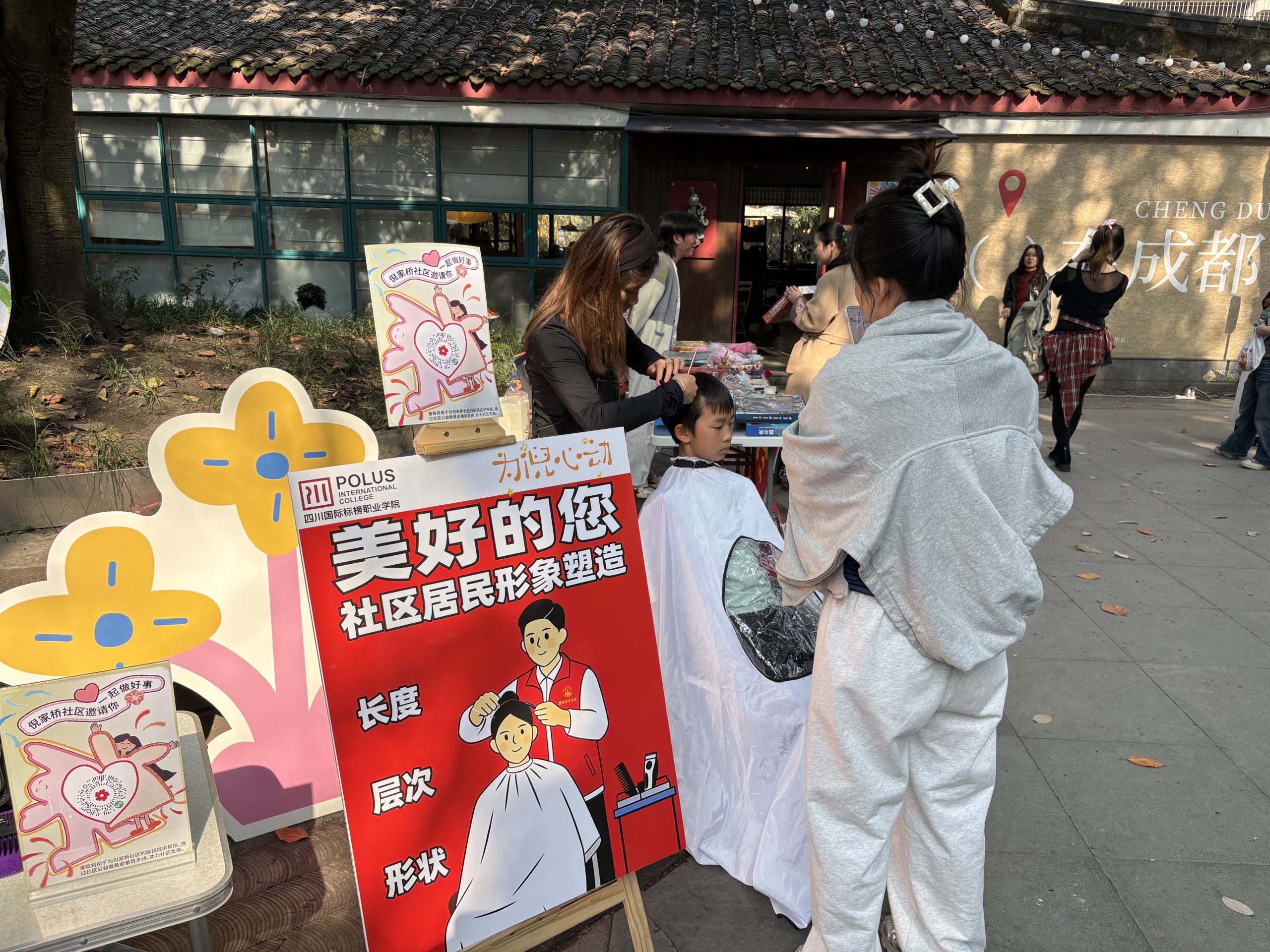 市集现场,我校志愿服务摊位前人头攒动。艺术与设计学院专业学生齐上阵,操起剪刀为社区居民提供公益义剪,清爽利落的新发型赢得连连点赞。