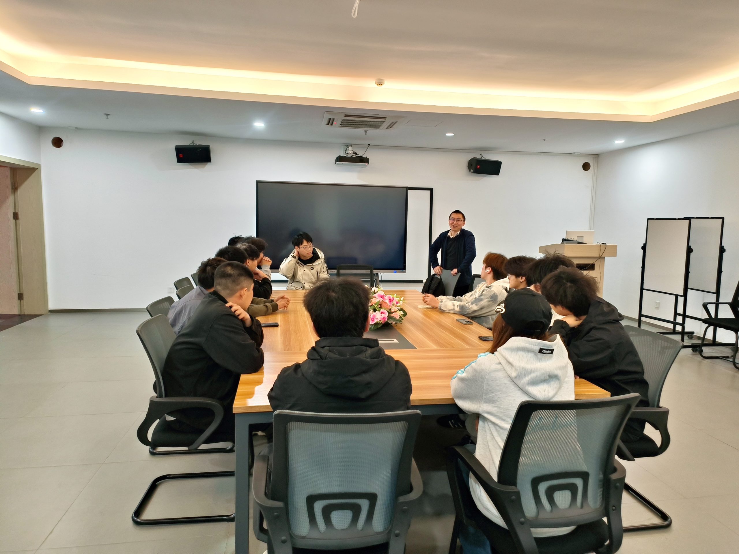 随后,西南交通大学唐教授及其研发团队走进我校,为前期召集的10余名对卡丁车研发感兴趣的学生开展专题分享会,正式启动 “标榜卡丁车一号战队” 的组建筹备工作。分享会上,团队成员介绍了卡丁车研发技术、行业前景与实践路径,激发了学生的专业学习与创新热情,为后续协会运营、项目研发奠定了坚实基础。