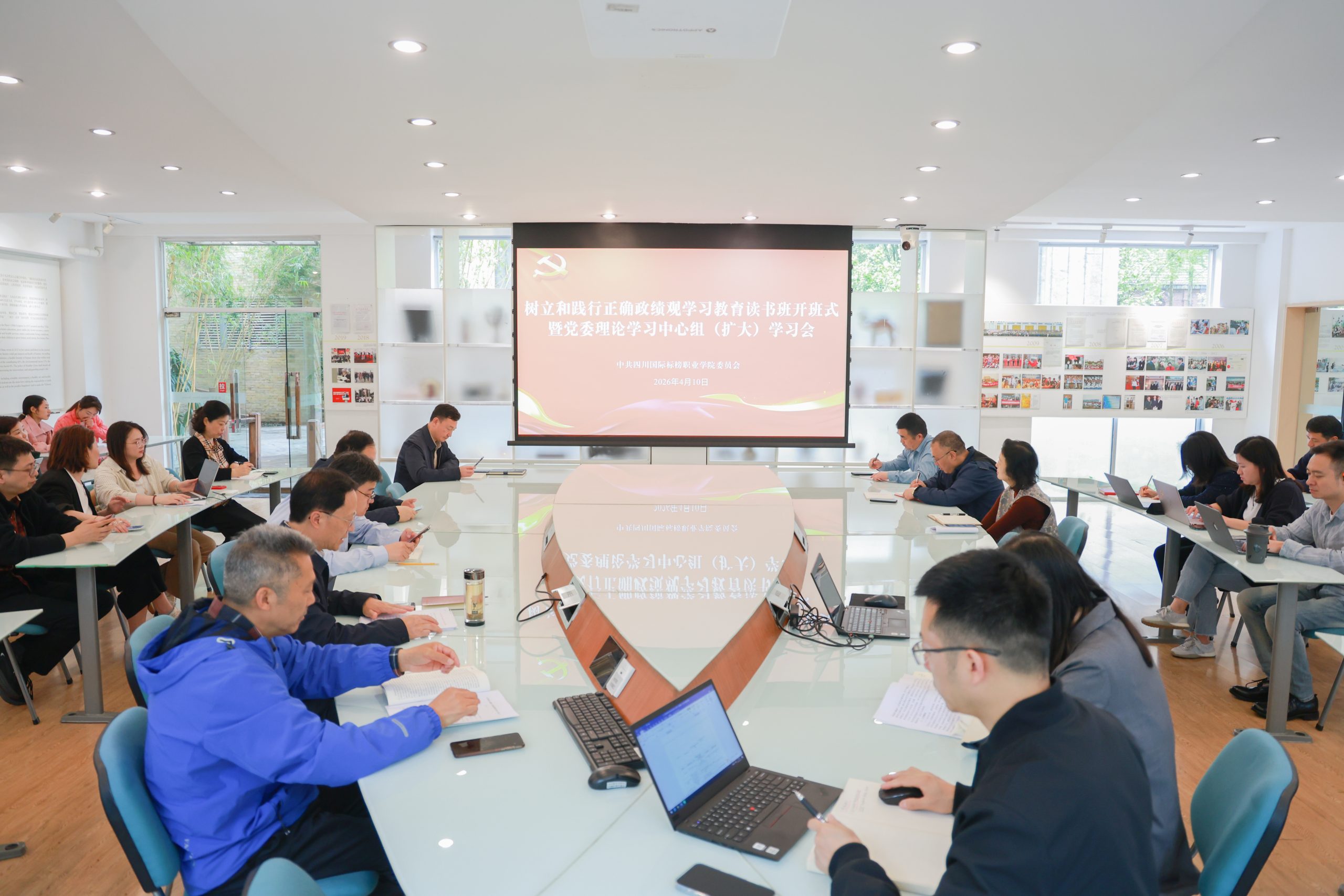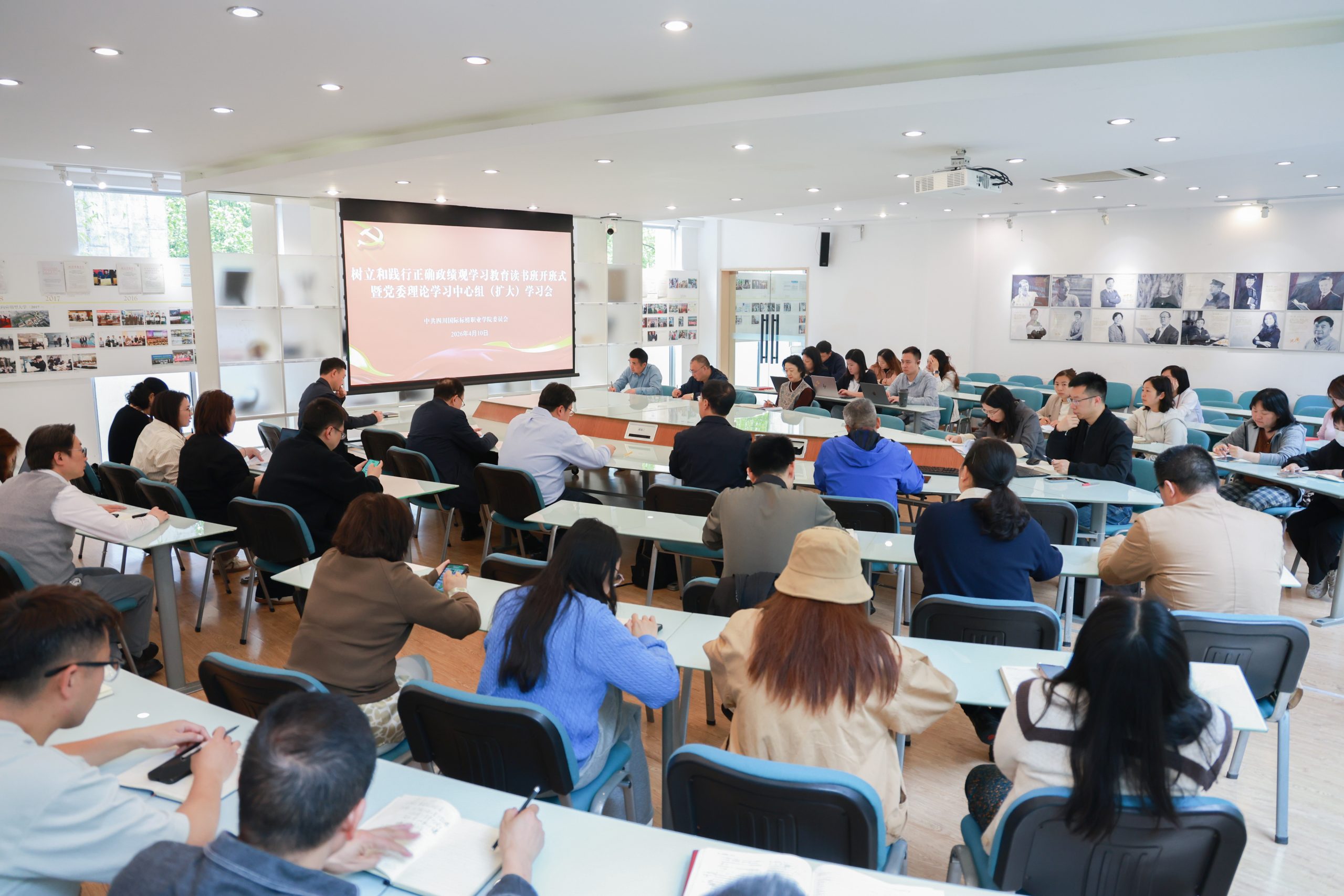 4月10日下午,学校树立和践行正确政绩观学习教育读书班开班,同时并召开党委理论学习中心组(扩大)学习会。会议由校党委书记曾诚主持,校党委委员、纪委委员、党政联席会成员、各党总支书记、党支部书记、职能部门负责人及党委办公室全体人员参会,共同深入学习贯彻习近平总书记关于树立和践行正确政绩观的重要论述,全面落实中央、省委及省委教育工委工作部署,凝聚起以正确政绩观引领学校高质量发展的思想共识与行动合力。