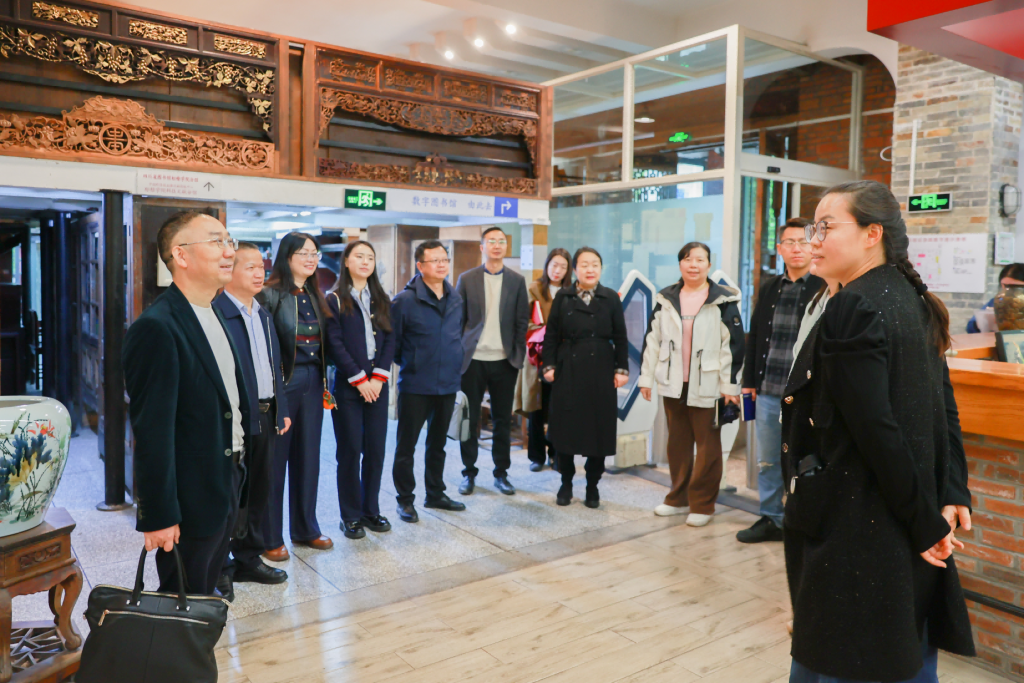 考察团首先来到学校图书馆,图书馆馆长庞慧萍详细介绍了图书馆的发展历史、特色资源建设、空间建设及文化建设。随后,考察团依次前往Coilicoil创意实验室、毕业生作品展区、管理与数字经济学院直播实训基地实地参观,全面感受我校校园文化氛围与育人特色。来访一行对我校浓厚的文化氛围、优美的校园环境、鲜明的办学特色和文化育人成果给予高度评价。