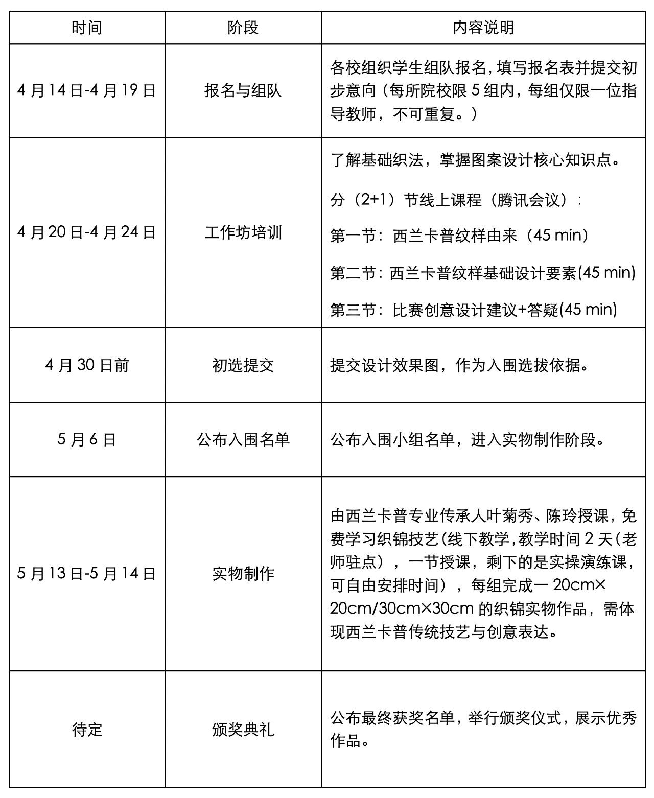参赛要求:每组需共同完成从图案设计到实物制作的全过程,体现协作精神与技艺融合。