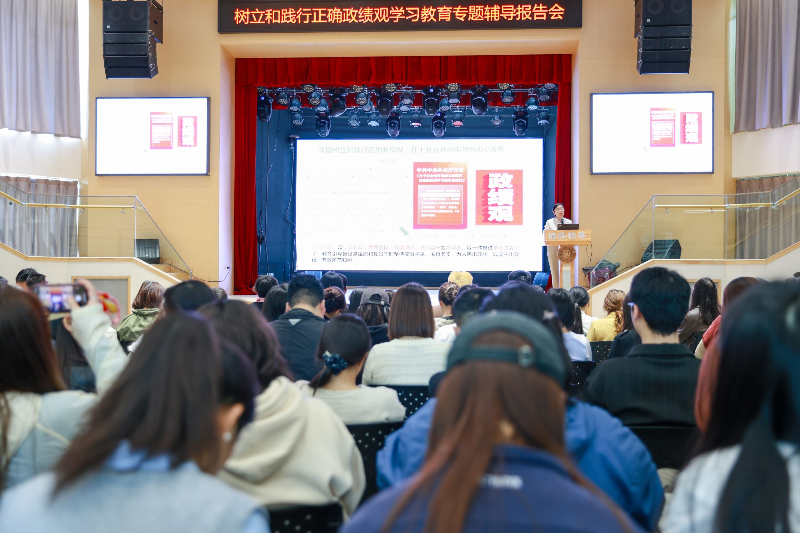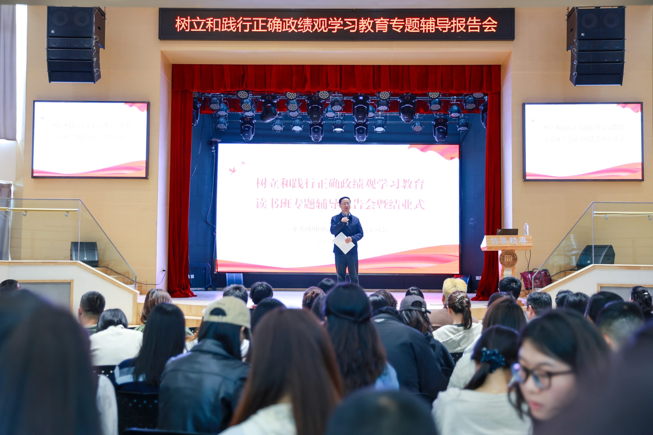 4月15日下午,学校在小剧场举行树立和践行正确政绩观学习教育读书班专题辅导报告会暨结业式。会议深入学习贯彻习近平总书记关于树立和践行正确政绩观的重要论述,全面落实中央、省委及省委教育工委工作部署要求,特邀四川省委党校(四川行政学院)吴晓燕教授作专题辅导报告。校党委委员、纪委委员、党政联席会成员、各党总支书记、党支部书记、职能部门负责人及全体党员参会,会议由校党委书记曾诚主持。