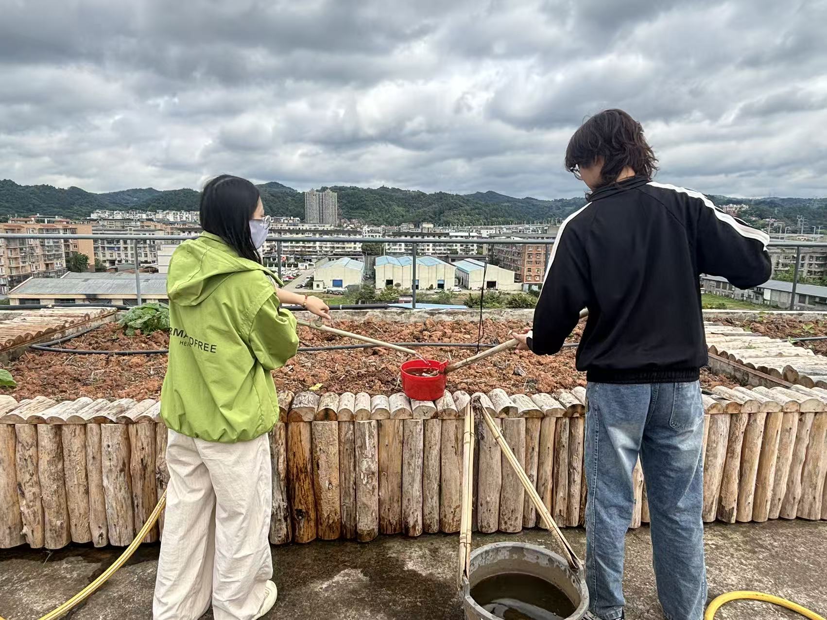 随后,同学们分组协作、有序劳作:一组同学小心翼翼进行蔬菜苗移栽,精准把控间距与深度,确保秧苗规范定植;一组同学科学配比肥料,均匀施于作物根部周边,做到适量不伤苗;还有一组同学手持水管细心浇灌,为蔬菜生长提供充足水分。大家分工明确、配合默契,不怕脏、不怕累,田间处处洋溢着青春朝气与劳动热情。