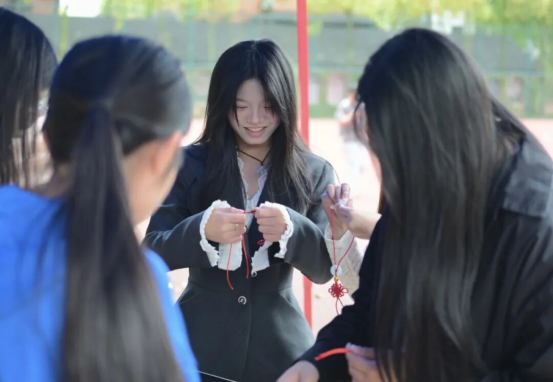4 月 16 日下午,学院在大榕树下开展 “同心共织石榴情” 同心结手工活动。工作人员现场讲解同心结的文化寓意与编织技巧,同学们互帮互助、动手实践,在穿绳打结中感受传统技艺魅力,体悟各民族同心同向、团结友爱的深刻内涵,以小小同心结凝聚浓浓团结情。