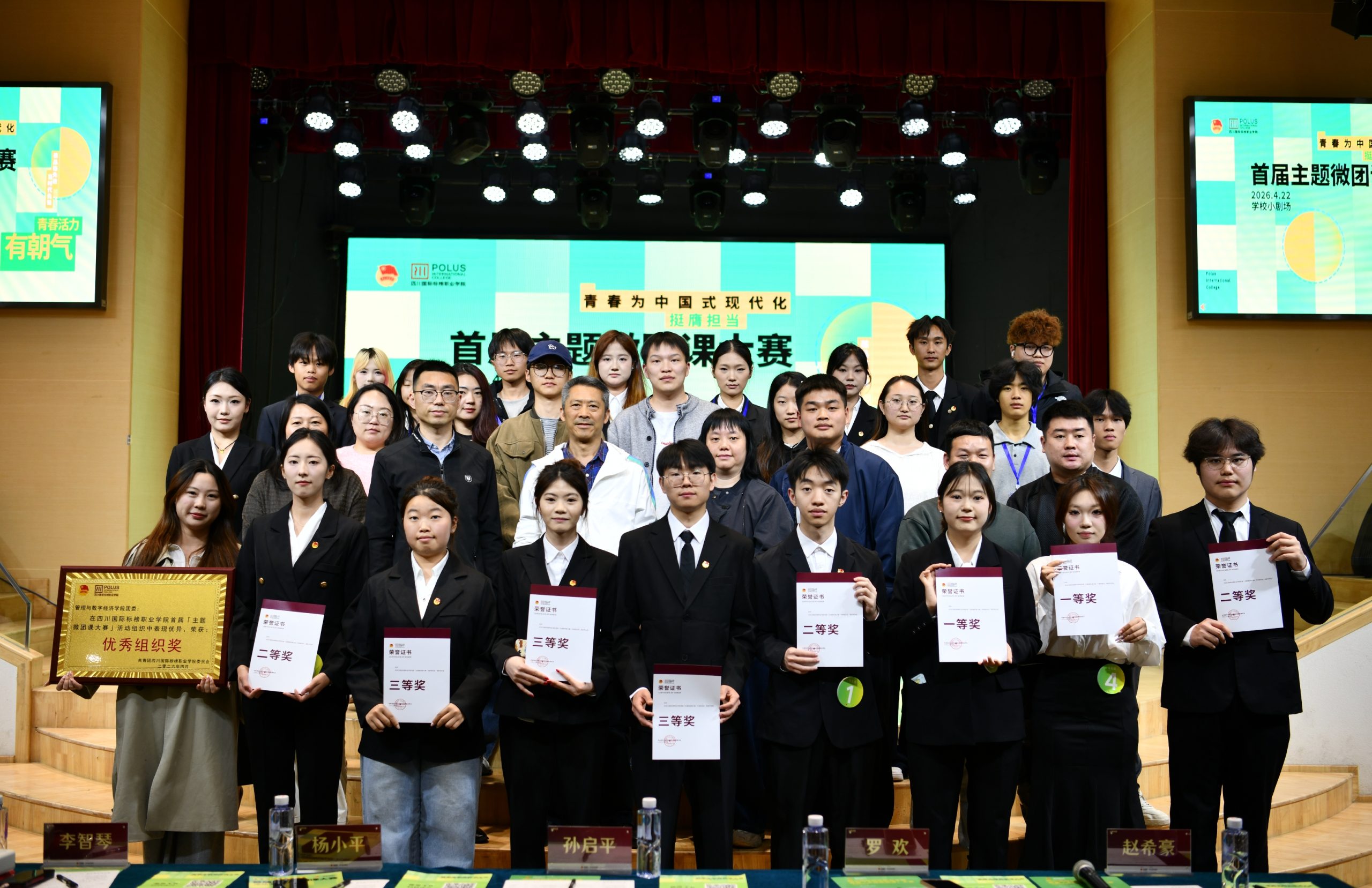 为深入学习贯彻习近平新时代中国特色社会主义思想,进一步强化青年思想政治引领,引导广大团员青年坚定理想信念、强化责任担当,2026年4月22日,四川国际标榜职业学院首届“青春为中国式现代化挺膺担当”微团课大赛决赛在学校小剧场顺利举行。全校11名师生选手同台展示、现场宣讲,为全体在场团学骨干带来一堂主题鲜明、内容深刻、感染力强的沉浸式思想教育微团课。